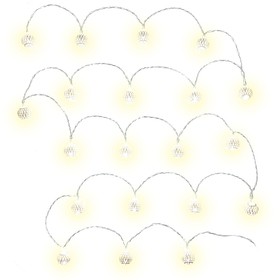 Stříbrné koule 20LEDČasovač: 6/18 hCelková délka kabelu: 3,3 mDélka osvětleného kabelu: 3 mDélka přívodní šňůry: 0,3 mTyp baterií: 2 x AABarva světla: studená bíláPočet LED: 20Pro vnitřní použitíKrytí: IP 20