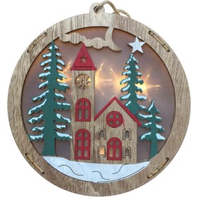 Vánoční dekorace - kostelík z dřevěné překližky3D světelný efekt pozadí5 LEDBarva světla: teplá bíláRozměry: 145 x 30 mmVhodné pouze pro vnitřní použití (IP 20)Napájení: 2xAAABaterie nejsou součástí balení