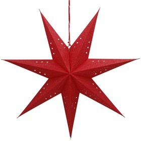Hvězda vánoční sedmicípáMateriál: Směs papíru a bavlnyTřpytivý posyp zlaté barvyBarva červená10LEDBarva světla: teplá bíláNapájení: 3xAAČasovač: 6/18 hPrůměr hvězdy: 60cmBaterie nejsou součástí balení