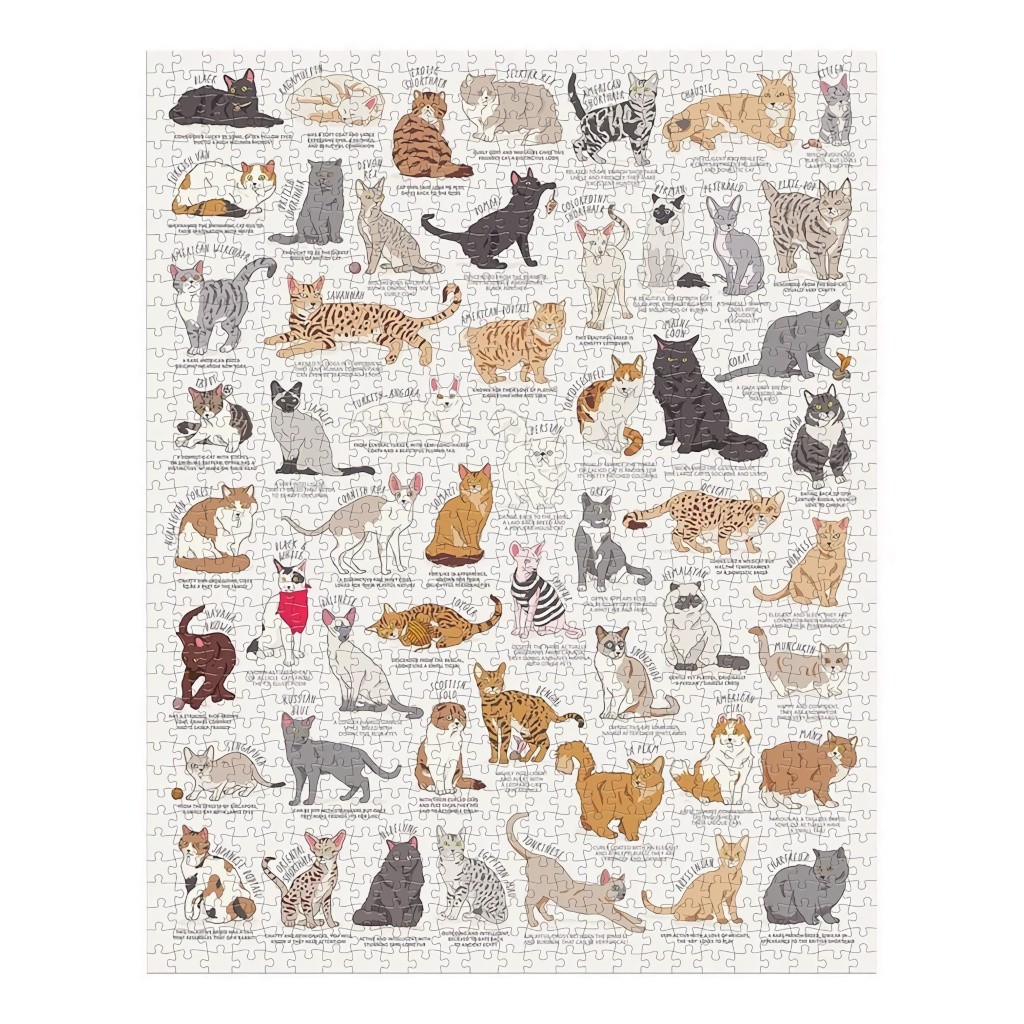 Užijte si hodiny zábavy s oblíbenými plemeny koček. Skládáním odhalíte na pět desítek různých, ručně ilustrovaných domácích koček a poznáte přitom i jejich typické vlastnosti. Ideální dárek pro každého milovníka těchto šelem! Po sestavení puzzle můžete zarámováním proměnit v obraz a pověsit na stěnu. Skládačka je spolu s návodným obrázkem balena v originálním kartónovém tubusu. Hlavní vlastnosti: 1000 přesně vyřezaných dílkůoriginální balenírozvíjí logické myšlení a motoriku