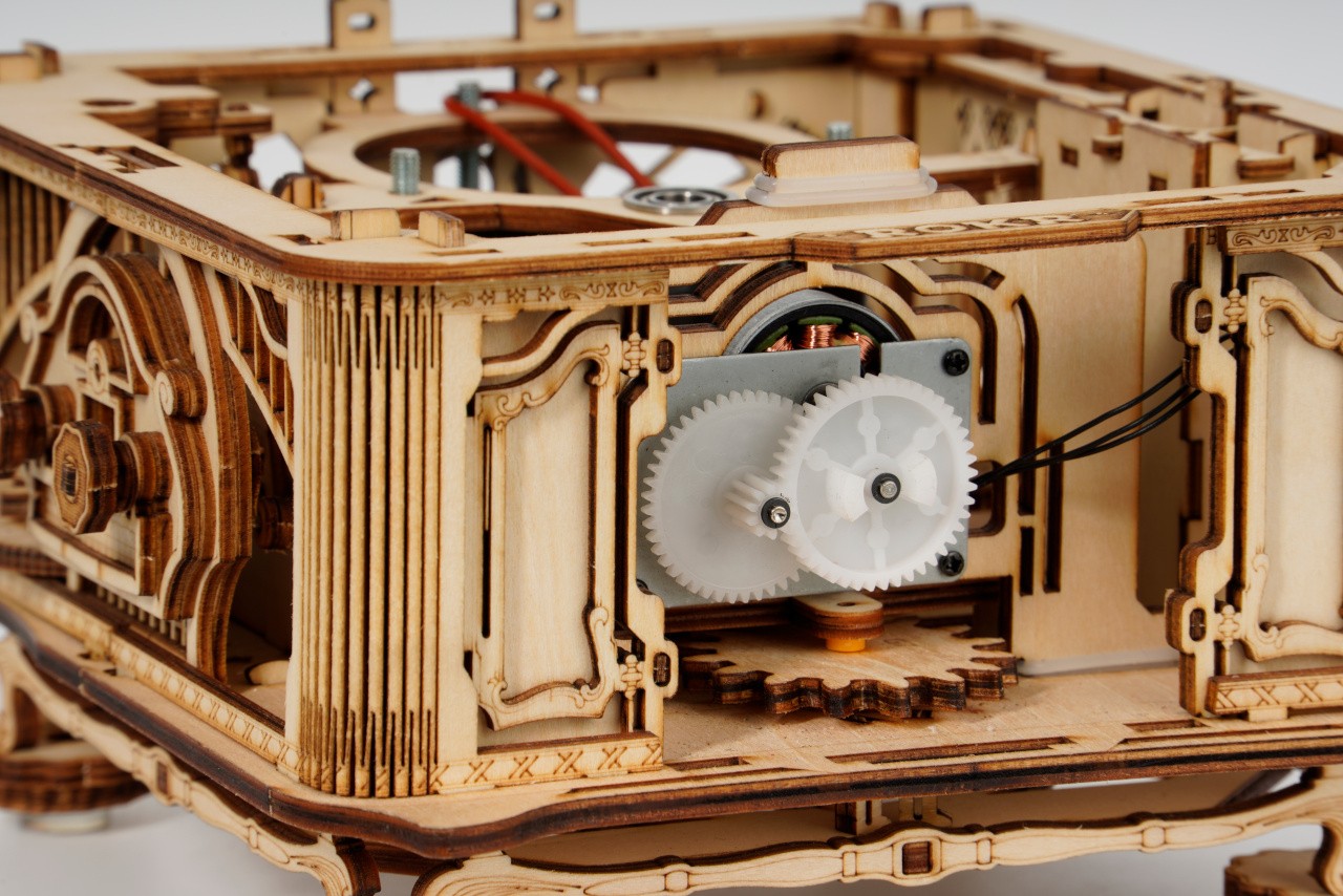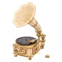 Jak zní historie? Stavebnice gramofonu z překližky. Retro designem, inspirovaným gramofonem vynalezeným Thomasem Edisonem, Vás přenese do 19. století. Není to jen model, skutečně umí přehrávat desky a je k němu i dodávána 7" gramodeska obsahující trojici písní (The Merry Gent, Memory Of A Dance, The Giant Killers). Zařízení disponuje ručně, klikou, poháněnou mechanikou a dynamem. Je možné jej ale pohánět i elektricky, pomocí vestavěného micro-USB konektoru. Podporuje desky o rozměrech 17,5 cm (7") a 25 cm (10") a všechny jim odpovídající rychlosti přehrávání. Hlasitost reprodukce lze upravovat pomocí otočného ovladače. Jedinečný dárek pro všechny milovníky kutilství a hudby, ale také luxusní interiérová dekorace do pokoje či kanceláře. Skládačka je dodávána v nesloženém stavu, balena v krabici. Vybaveno detailním návodem k sestavení. Hlavní vlastnosti:gramofon a 7" gramodeska424 precizně vyřezaných dílkůvysoká obtížnost sestaveníruční pohon nebo pomocí micro-USBdodávaná gramodeska obsahuje písně:The Merry GentMemory Of A DanceThe Giant Killers