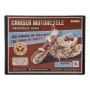 Stavebnice těžkého cestovního motocyklu vyrobená z překližky, je určená všem, kdo sní o bezstarostné jízdě divokým západem. Model je vybaven natahovacím pružinovým strojkem vybaveném spouští, díky němuž je schopen svižné jízdy. Směr je možno částečně ovládat nastavením funkčních řídítek a chod motoru je přitom poutavě ztvárněn pohybem pístů. Motorka zaujme i dalšími funkčními mechanickými podrobnostmi, odpružením vidlice předního kola, či stojanem, s jehož pomocí dovedně zkrášlí poličku, či stůl ve Vašem pokoji, nebo kanceláři. Po obou stranách sedla je vybavena užitečnými skříňkami, které poslouží hrám, ale je možno do nich uložit i drobnou cennost, nebo vzkaz. Skládačka je dodávána v nesloženém stavu, balena v krabici. Vybaveno detailním návodem k sestavení. Hlavní vlastnosti:420 precizně vyřezaných dílkůstřední obtížnost sestavenívýsledný model je řiditelný a schopný samostatné jízdydrobný úložný prostor