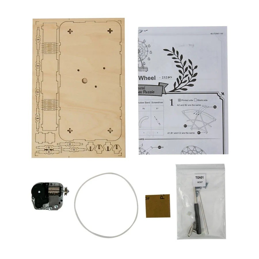 Detailní model klasického kolotoče. Skládačky hracích skříněk Robotime jsou nabízeny v mnoha podobách, přírodních i barevných, lišících se nápaditými pohyblivými detaily doprovázejícími zvuk. Nezaskočí Vás svou náročností a po sestavení zkrášlí poličku. Nechte se unášet známými melodiemi, každá skříňka hraje jinou, odpovídající své výsledné podobě. Kvalitní natahovací 18 tónové strojky s japonskými komponenty zaručují čistý a dostatečně hlasitý projev. Skládačka je dodávána v nesloženém stavu, balena v krabici. Vybaveno detailním návodem k sestavení. Hlavní vlastnosti:melodie z filmu Cesta kolem světa za 80 dní232 precizně vyřezaných dílkůstřední obtížnost sestavení