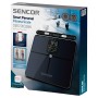 Chytrá váha Sencor SBS 9102BK změří BMI, tuk, svaly, vodu i kostní hmotu. Připojení přes Bluetooth a aplikaci Sencor HOME, nosnost 180 kg, elegantní tvrzené sklo – ideální pro domácnosti i sportovce.