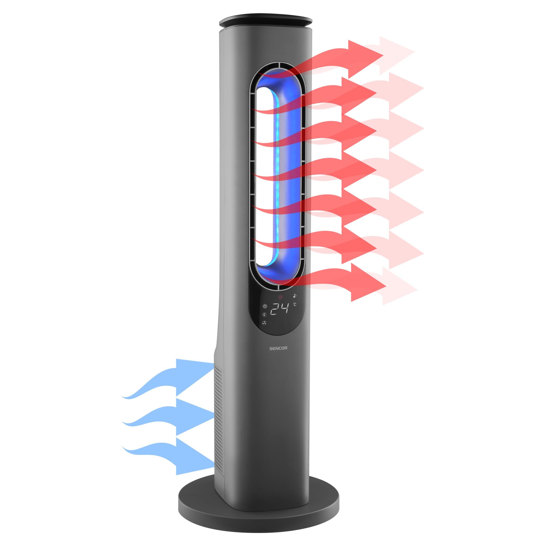 SENCOR SFH 3704SL je moderní sloupové topidlo kombinující keramická PTC topná tělesa s bezvrtulovým designem. Nabízí efektivní a rovnoměrné vytápění prostorů, možnost ventilace v létě a několik užitečných funkcí pro pohodlí uživatele.