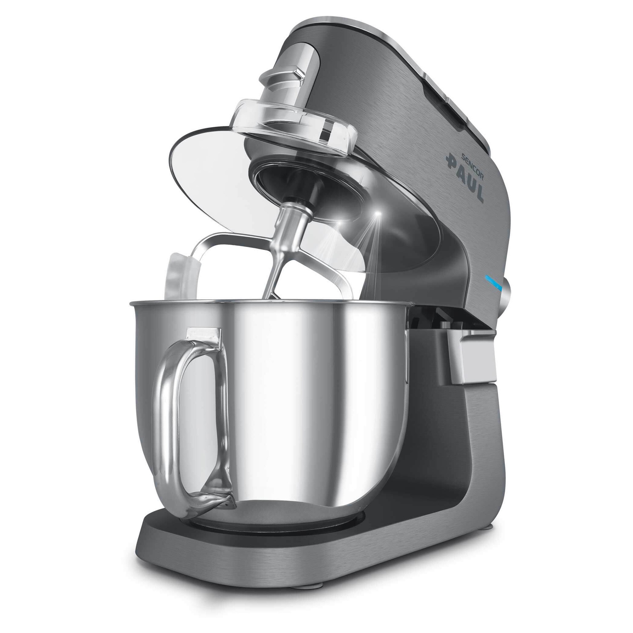 SENCOR STM 7970 PAUL 1 je výkonný multifunkční kuchyňský robot s celokovovým tělem a kovovými převody, navržený pro náročné domácí vaření a velké objemy surovin. Silný motor s příkonem 1 700 W, planetární systém míchání a funkce Sencor Smart Power & Energy zajišťují dokonalé promíchání, hnětení i šlehání. Robot je vybaven dvěma velkými nerezovými mísami, skleněným mixérem, masomlýnkem, XL struhadlem a širokou sadou příslušenství pro maximální všestrannost. Celý popis