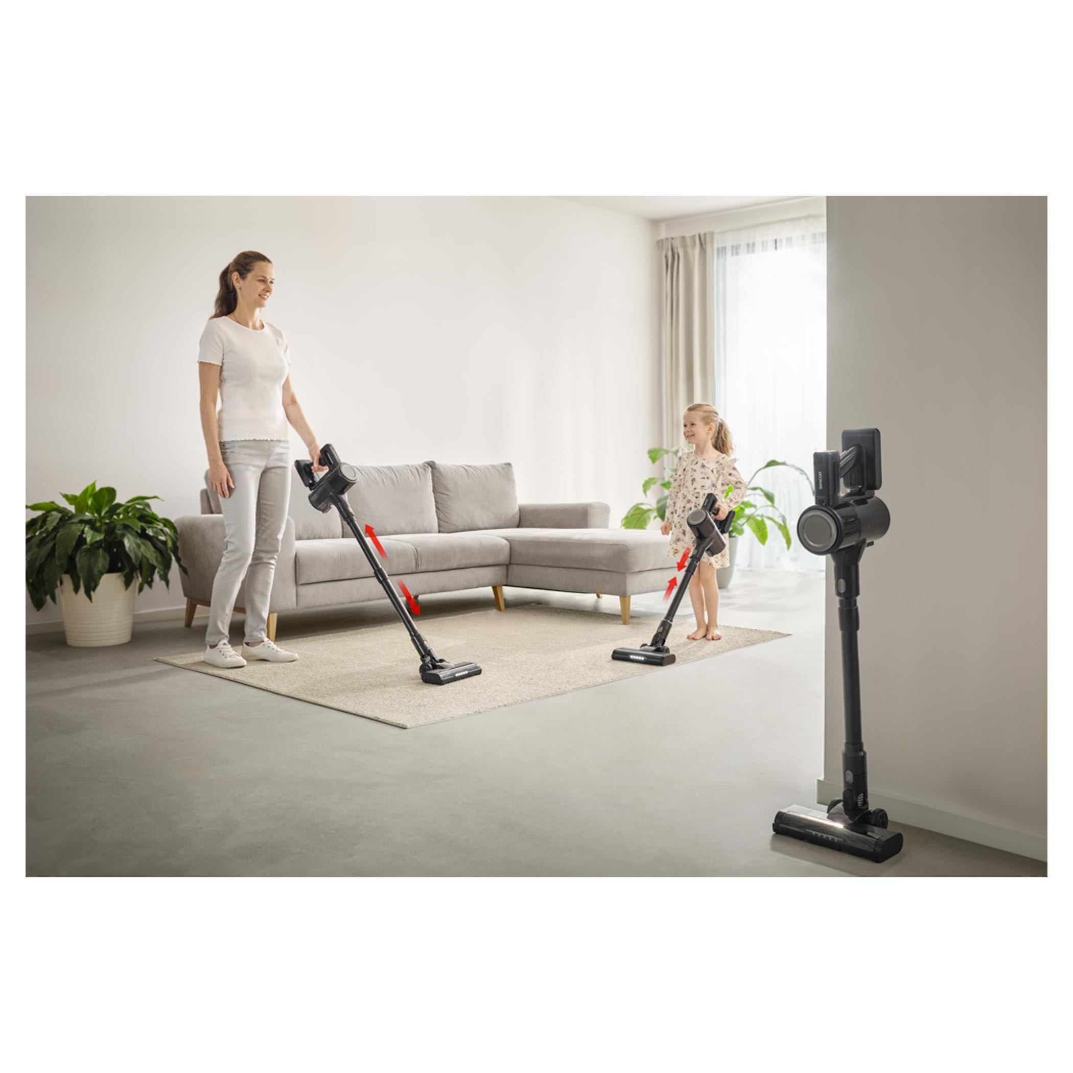 Vysavač je vybaven digitálním motorem o výkonu 200 W a rotačním kartáčem s vlastním pohonem, který zajišťuje účinný sběr nečistot. Podlahová hubice s LED osvětlením pomáhá odhalit i drobný prach. O napájení se stará Li-Ion baterie 22,2 V / 2 600 mAh, která umožňuje provoz až 35 minut v režimu denního úklidu nebo 17 minut při vysokém výkonu.