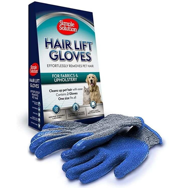 Rukavice na odstraňování chlupů Simple Solution mají jedinečnou texturu, která pomáhá uvolňovat chlupy domácích zvířat z náročných povrchů jako jsou tkané látky, koberečky, záclony a ložní prádlo. Snadno se používají a lze je prát v pračce, balení obsahuje 2ks univerzální velikosti.