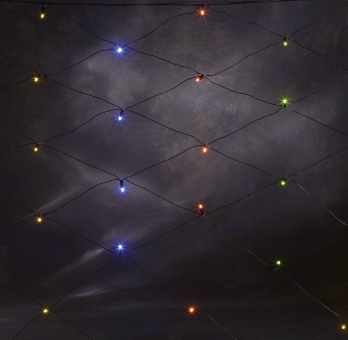 Dekorativní síť s barevnými LED diodami 3751-500 s rozměrem 2,5 x 1,5 mSíť je určena pro venkovní použití včetně napájecího transformátoru.