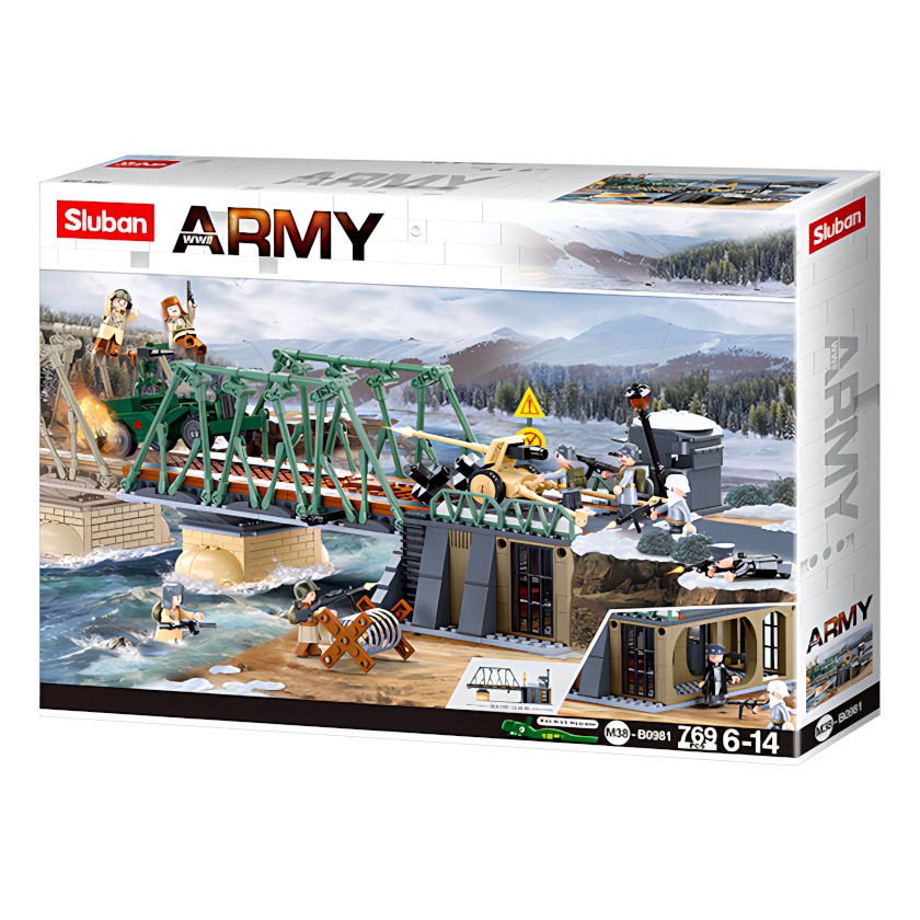 Inovativní stavebnice Sluban je možno kombinovat s podobnými stavebnicemi mnoha dalších významných výrobců. Jsou vyráběny z kvalitního, nezávadného a odolného ABS plastu. Každá stavebnice je opatřena návodem k sestavení a balena v pestře potištěné papírové krabičce. Hlavní vlastnosti:769 dílků, 9 figurekstřední obtížnostvhodné kombinovat s další stejnou stavebnicí a sovětským tankem M38-B0979inovativní figurky s otáčivými i výkyvnými částmi tělkompatibilní se stavebnicemi dalších výrobců