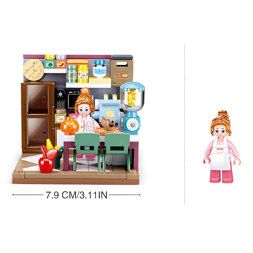 Moderní kuchyně. Krásná stavebnice z řady Mini Handcraft. Inovativní stavebnice Sluban je možno kombinovat s podobnými stavebnicemi mnoha dalších významných výrobců. Jsou vyráběny z kvalitního, nezávadného a odolného ABS plastu. Každá stavebnice je opatřena návodem k sestavení a balena v pestře potištěné papírové krabičce. Hlavní vlastnosti: 178 dílků, 1 figurka nízká obtížnost inovativní figurky s otáčivými i výkyvnými částmi těl kompatibilní se stavebnicemi dalších výrobců