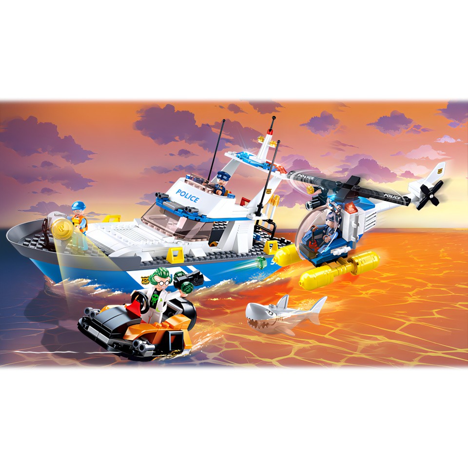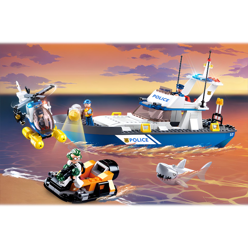 Sluban Policie M38-B0657 Loď, vrtulník a zloděj v člunu
