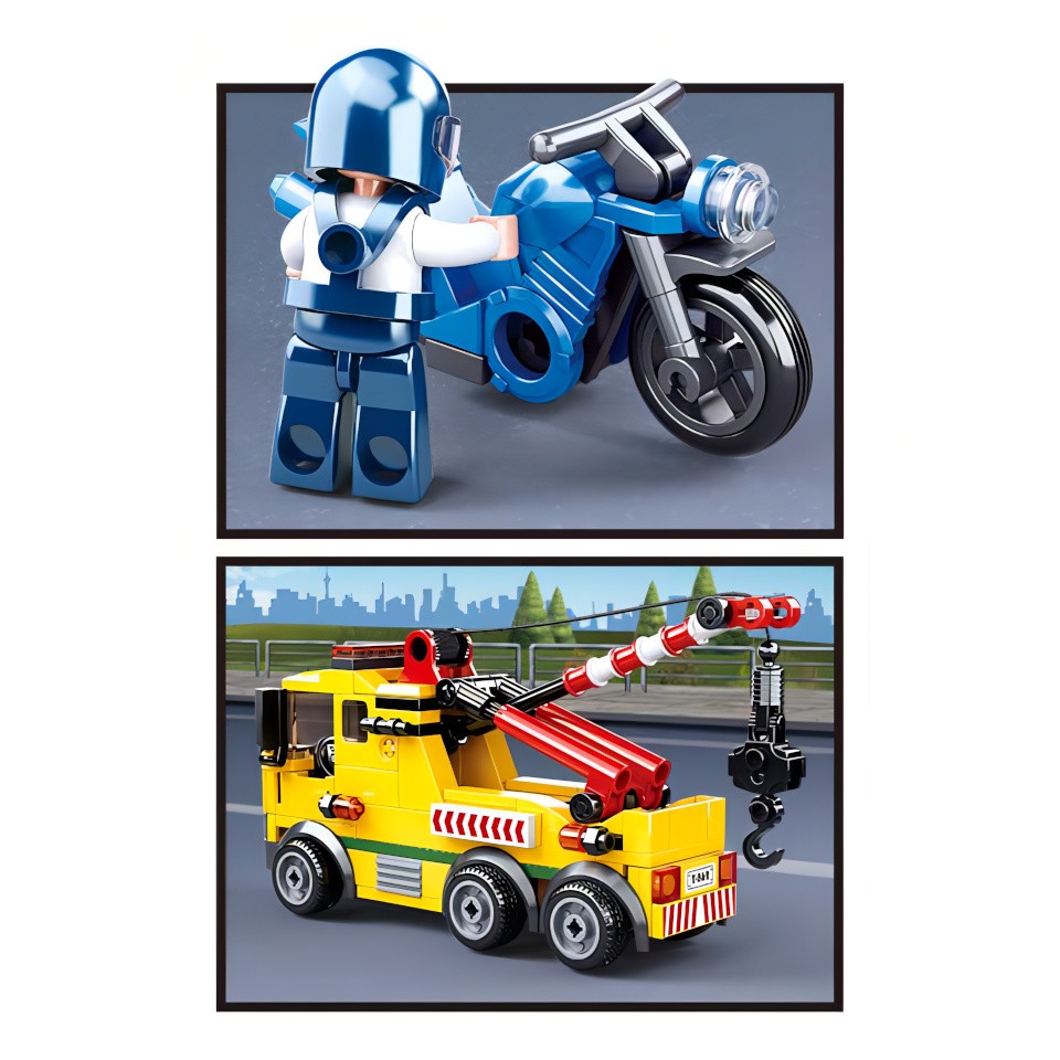Inovativní stavebnice Sluban je možno kombinovat s podobnými stavebnicemi mnoha dalších významných výrobců. Jsou vyráběny z kvalitního, nezávadného a odolného ABS plastu. Každá stavebnice je opatřena návodem k sestavení a balena v pestře potištěné papírové krabičce. Hlavní vlastnosti:205 dílků, 2 figurkystřední obtížnostinovativní figurky s otáčivými i výkyvnými částmi tělkompatibilní se stavebnicemi dalších výrobců