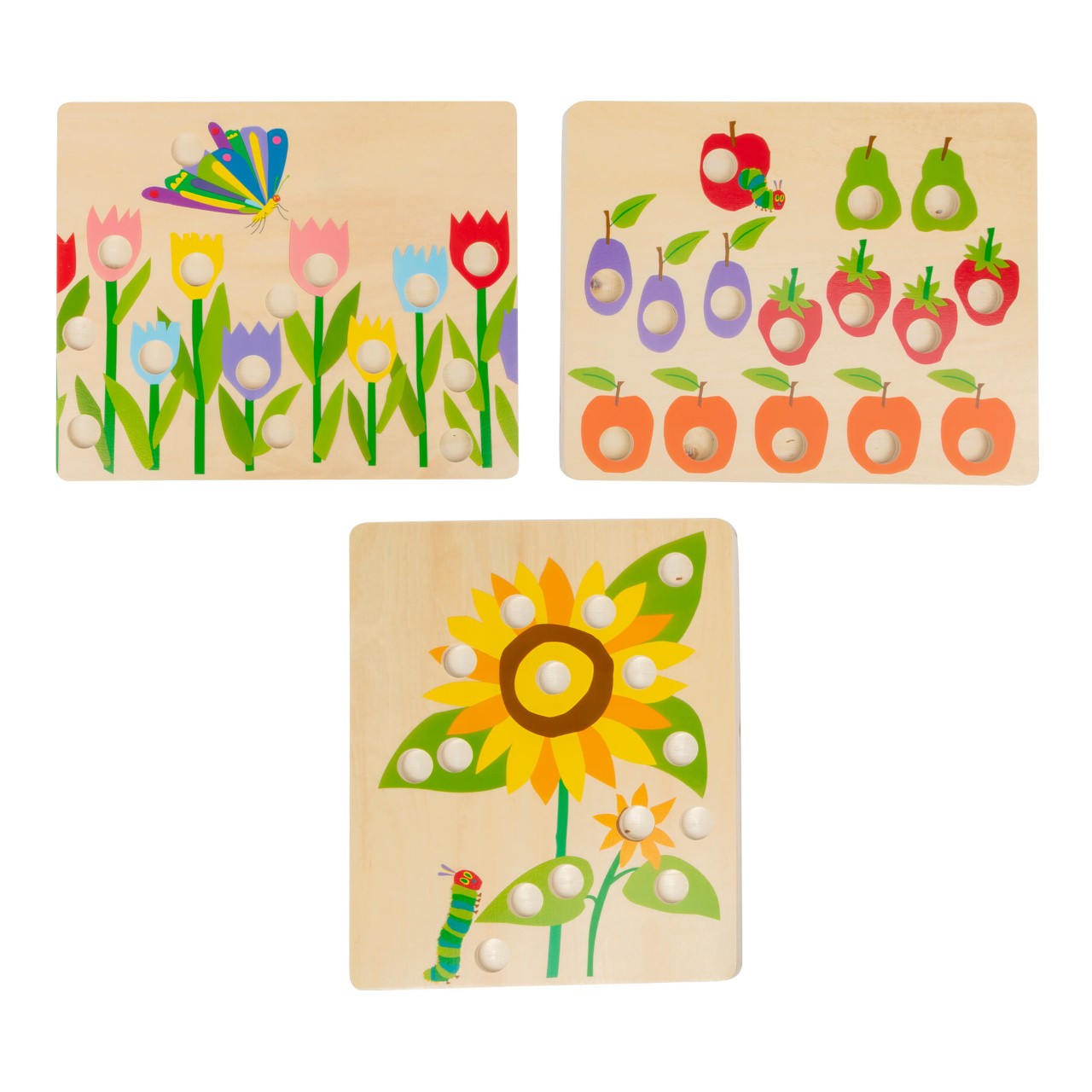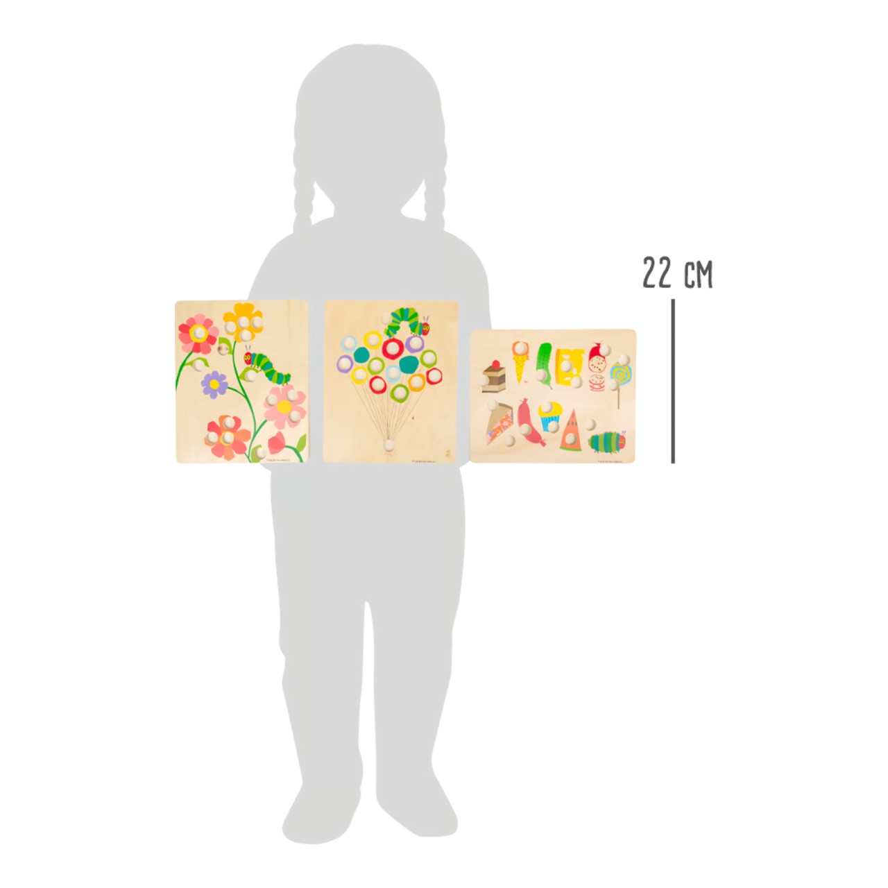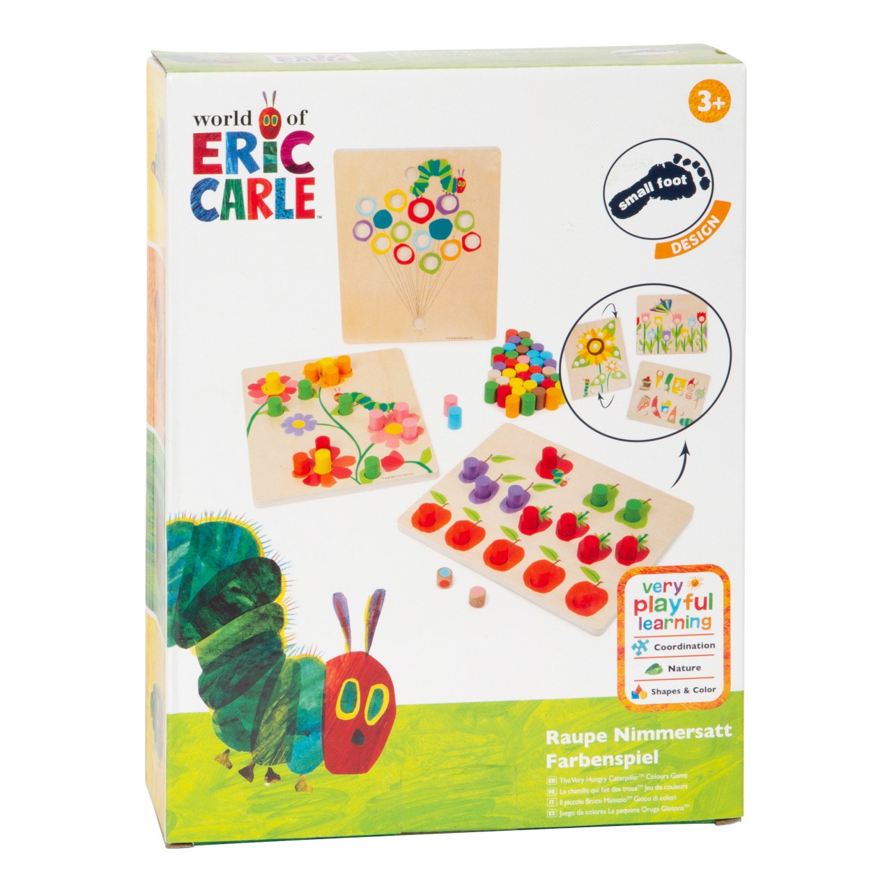 Small foot Barevná hra Caterpillar - kam patří která barva? Tato hra obsahuje 95 dílků, které musíte barevně přiřadit k herní desce. Tři herní desky s dohromady šesti obrázky. Vzdělávací hra, která procvičuje poznávání barev a jemnou motoriku. Herní desky z pevného dřeva mají velmi kvalitní potisk, můžete je uložit do textilního pytlíku, jsou ideální na cesty. Hlavní vlastnosti: obsahuje 95 dílkůprocvičuje poznávání barevideální na cesty
