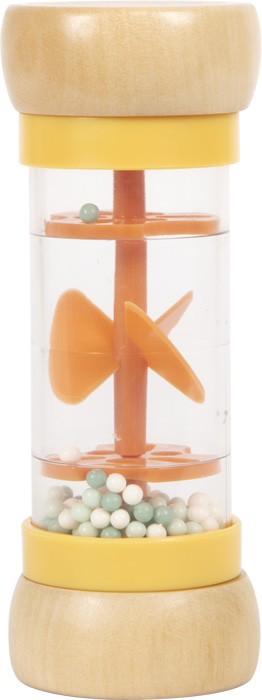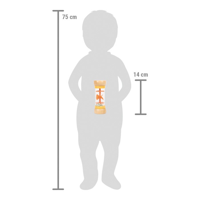 Tak přesně takhle zní déšť! S dešťovou holí můžete imitovat zvuky jemného deště. Můžete ji použít jako chrastítko nebo rytmickou hračku. Tělo hračky je průhledné, můžete tak pozorovat, jak kuličky padají přes zábrany a rotující vrtuli. Fascinující smyslová hračka pro miminka a malé děti. Vizuálně i akusticky trénuje vnímání a zaručuje dlouhotrvající zábavu. Tahle zvuková hračka je vhodná i jako chrastítko pro nejmenší. Díky kompaktních rozměrů je toto chrastítko do deště také snadno uchopitelné do dětských rukou a je také ideální na cesty. Hlavní vlastnosti: hračka trénuje akustické a vizuální vnímánívhodná také jako chastítko pro nemluvňatauklidňuje smysly dětí i dospělýchideální na cesty