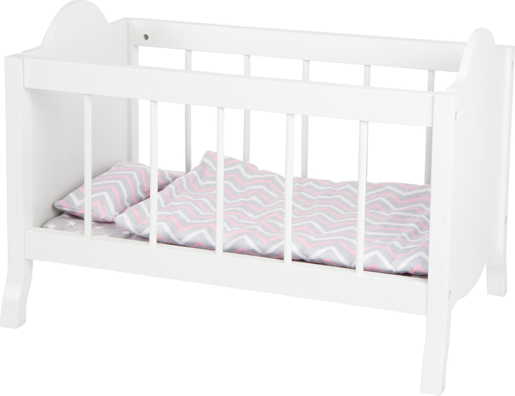 Rozměry: 50x30x34 cm Věk: 3+ Materiál: masivní dřevo, látka Včetně povlečení Vhodné pro panenky do 47 cm Celý popis