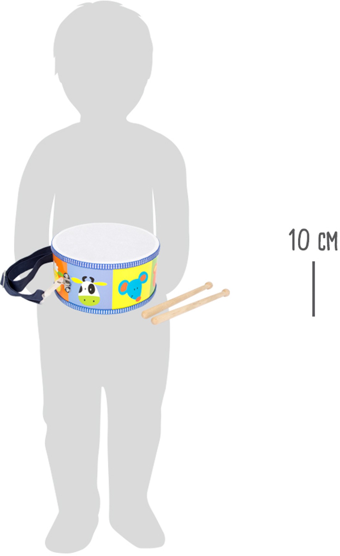 Pohádkově barevný buben s roztomilými zvířecími hlavami zve k veselé vzpouře v dětském pokoji! To není hluk, to je hudba a radost z pohybu na celé čáře! Zde si mohou děti procvičit motoriku, vyřádit se a probudit zájem o hudbu! Včetně nastavitelného popruhu s 2 karabinkami a 2 bubínkovými paličkami (délka: cca 18 cm). Hlavní vlastnosti: trénuje motoriku dětínastavitelný popruh
