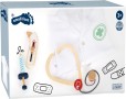 Kompletní hrací set s lékařským plášťem a zdravotnickým vybavením. Najdete zde injekční stříkačku, stetoskop a teploměr z robustního dřeva. Píst stříkačky se po stlačení zatáhne. Teploměr má nastavitelný ukazatel teploty. Lékařský plášť má dvě praktické kapsy, zapíná se na patentky, takže si jej mohou mladí medici rychle obléct i svléct. Ideální hračka pro hraní na role nebo jako kostým na karneval. Vhodné pro děti, které jsou vysoké 105-110 cm (vel. 110). Ideální doplněk k doktorské brašně a dalším podobným produktům. Hlavní vlastnosti: Lékařský plášť a další doplňkyPro děti vysoké 105-110 cmPerfektní pro hraní na role nebo na karneval