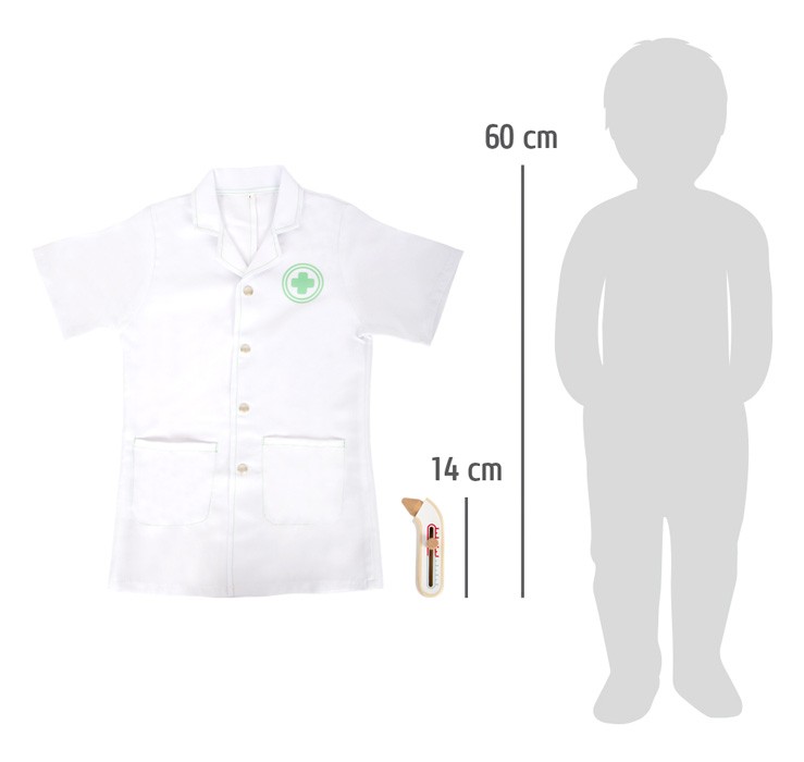 Velikost pláště pro děti: 110 Rozměry teploměru: 13,5x6x3,5 cm Věk: 3+ Materiál: látka, dřevo Celý popis