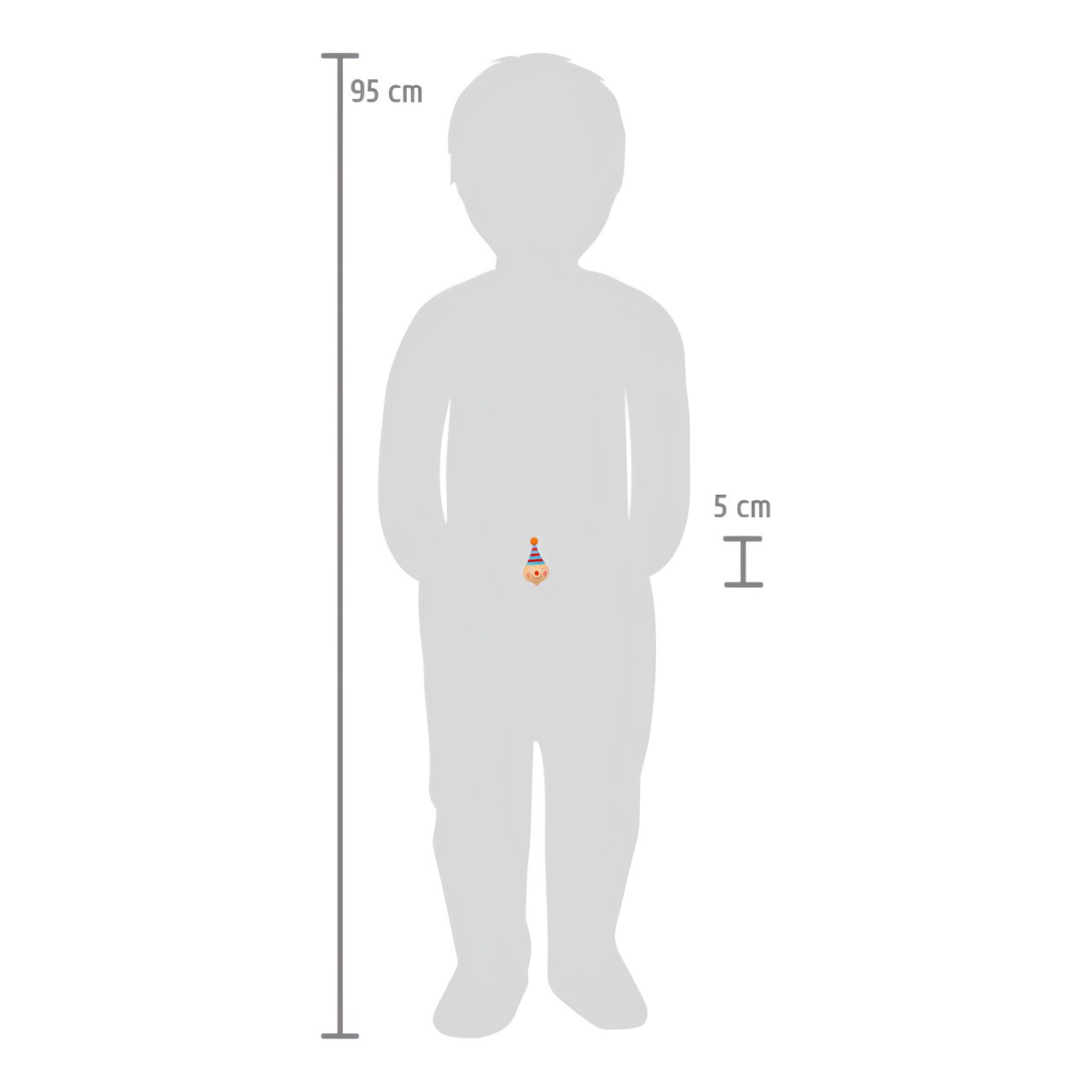 Káča s klaunským obličejem vysoustružená z masivního dřeva je barevně a transparentně lakovaná. Snadné uchopení za špičaté klobouky. Trénuje jemnou motoriku prstů. Hlavní vlastnosti: procvičuje jemnou motoriku