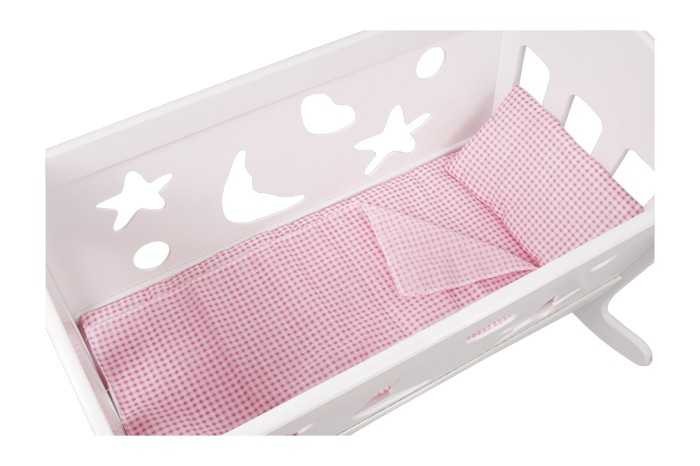 Tato nádherná bílá kolébka pro panenky ze dřeva má ozdobné vyřezávání s motivem slunce, měsíce a hvězd. Kolébka pro panenky je snem každé panenky a je to skvělá hračka pro děti. Tahle kolébka nesmí chybět v žádné dětském pokojíčku. Součástí je přikrývka, polštář a matrace. Hlavní vlastnosti: podporuje aktivní hraní a trénuje sociální dovednostistabilní konstrukce, kvalitní zpracovánívhodná i pro školky