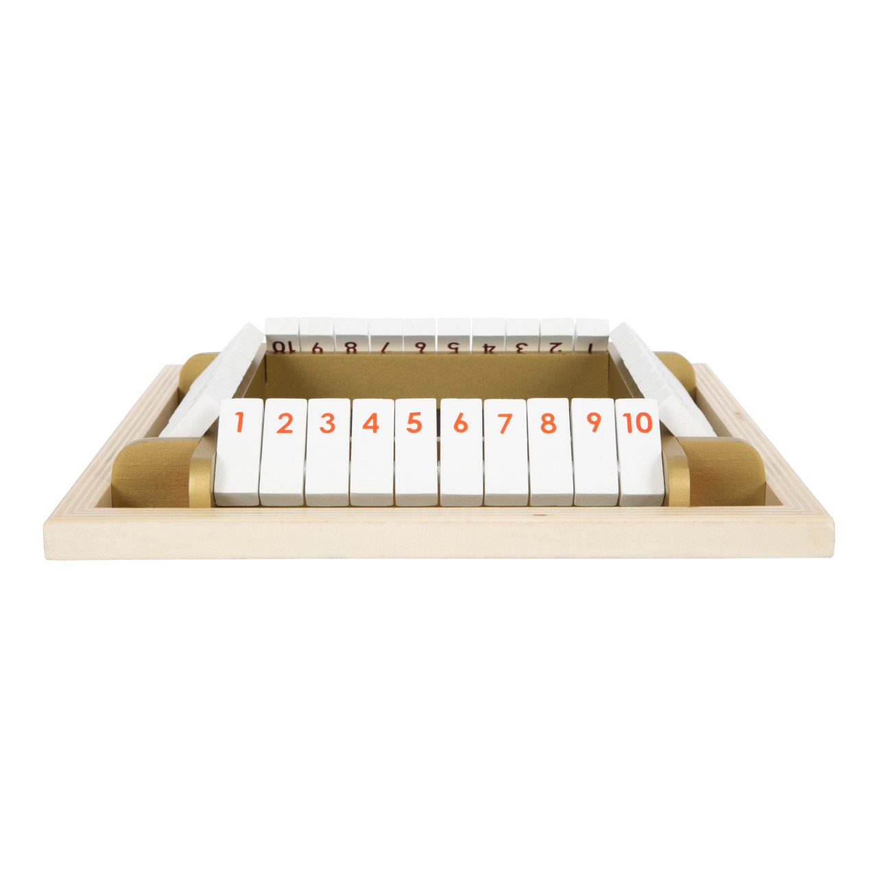 Zábavná dřevěná hra, která dětem zlepší jejich numerické dovednosti. Hra s jednoduchými pravidly, která svým elegantním vzhledem se zlatými akcenty, upoutá pozornost. S vysoce kvalitním boxem pro skladování. Hra s klapkami v moderním vzhledu je skvělá kostková hra, která bude bavit celou rodinu. Hodí se i pro předškoláky, aby se hravou formou naučili čísla a aritmetiku. Podporuje koncentraci a návyk učení. Hlavní vlastnosti: hra pro jednoho nebo více hráčůpodporuje koncentracis boxem pro skladováníideální pro předškoláky
