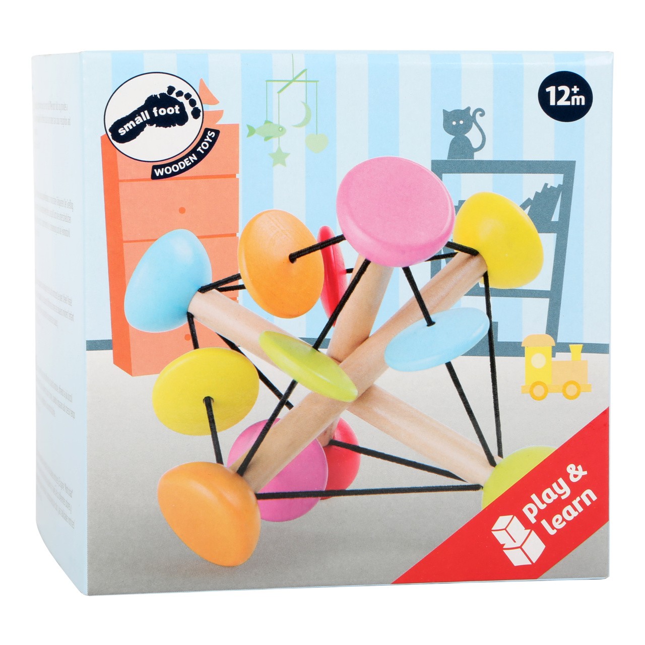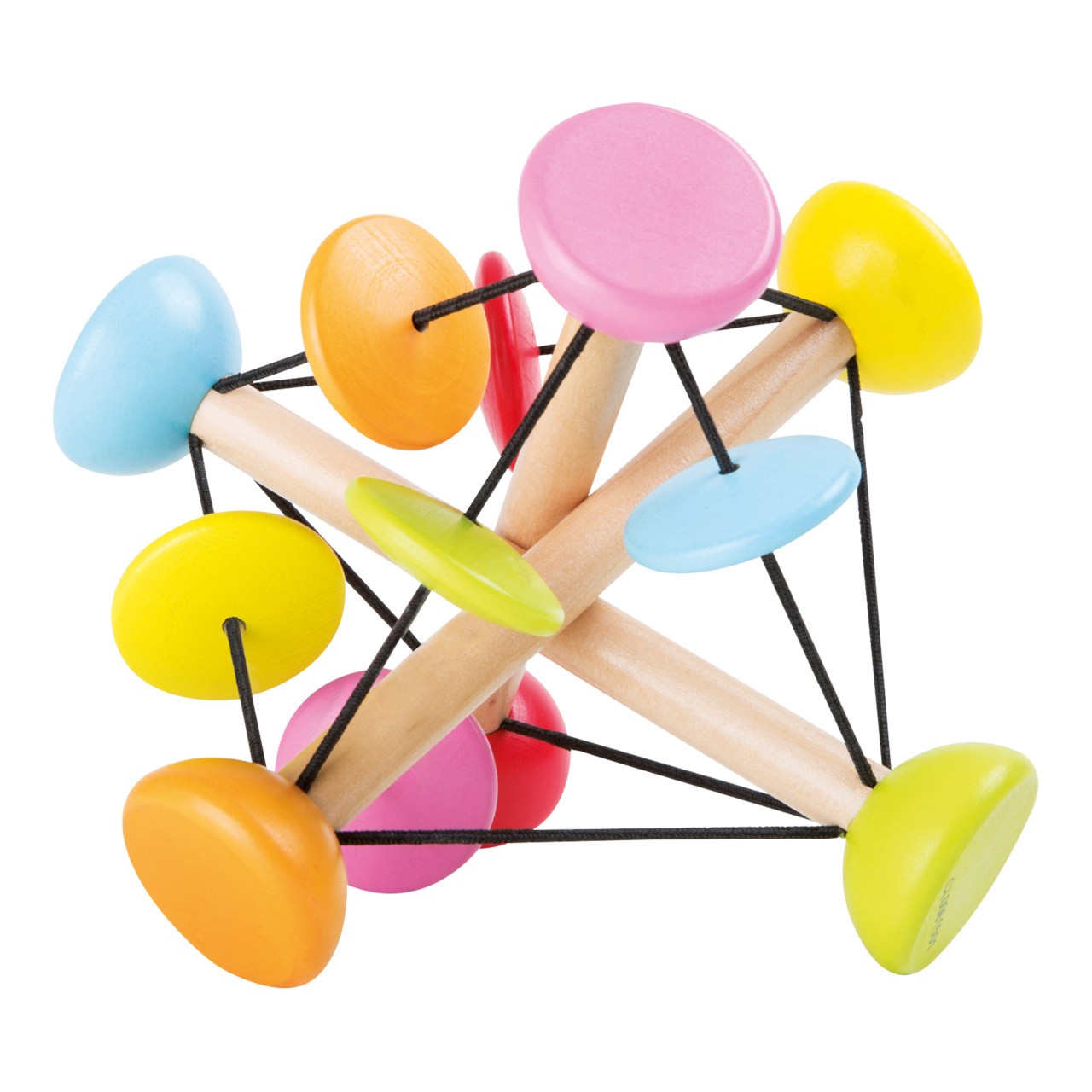 Tři dřevěné tyčky jsou spojeny gumičkami. Jsou vysoce flexibilní a lze je libovolně otáčet. Je to skutečná sportovní výzva pro malé ručičky. Barevné posuvné prvky při pohybu chrastí. Hlavní vlastnosti: barevný designvyrobeno v Německu z kvalitních a zodpovědně získaných materiálů