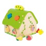 Objevovat a učit se s tímto barevným domem a barevně lakovanými tvary z masivního dřeva je pro děti radost! Při vkládání tvarů do příslušných otvorů si děti procvičují jemnou motoriku formou hry.Hlavní vlastnosti: procvičuje jemnou motorikuvkládání kostek geometrických tvarů nebo ovoce