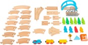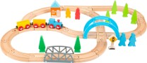 Svět malých železničářů plný zábavy! Vlaková souprava včetně rozsáhlé sady příslušenství vykreslí košatý příběh. Vláček, vagónky, domeček, most, stromy, figurky či semafor budou hlavními postavami této okružní poznávací jízdy. Naložené vagónky lze k vláčku zapojit pomocí magnetu. Produkt je kompatibilní s dřevěnými vláčkodráhami jiných výrobců. Hlavní vlastnosti: obsahuje 40 dílůkompatibilní s dřevěnými vláčkodráhami dalších výrobcůpodporuje představivost, obratnost a koordinaci
