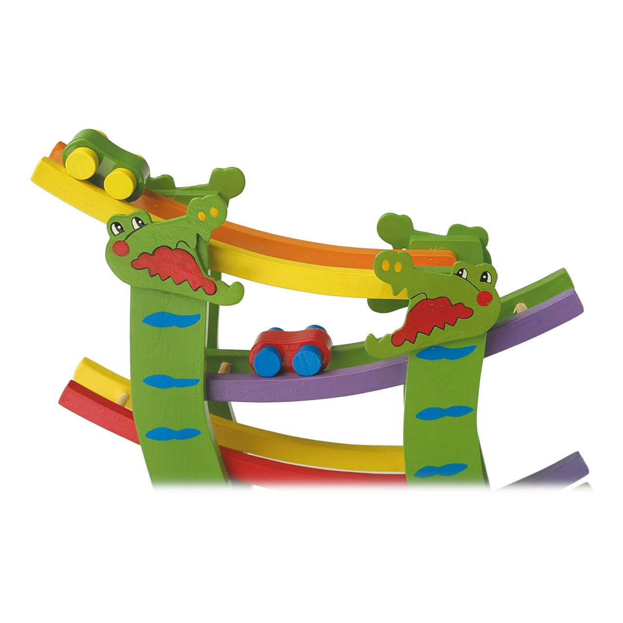 Poškozený obal. Nové zboží bez závad. Pojďme si hrát! Na této husté a designové závodní dráze si užijete mnoho zábavy. Pestré barvy a kousající hlavy krokodýla vás lákají k závodu. Položte autíčka na start a nechte je sjet až dolů, které auto vyhraje? Rychlá zábava pro všechny milovníky krokodýlů! Hlavní vlastnosti: obsahuje 4 autíčkaveselý design s motivem krokodýla