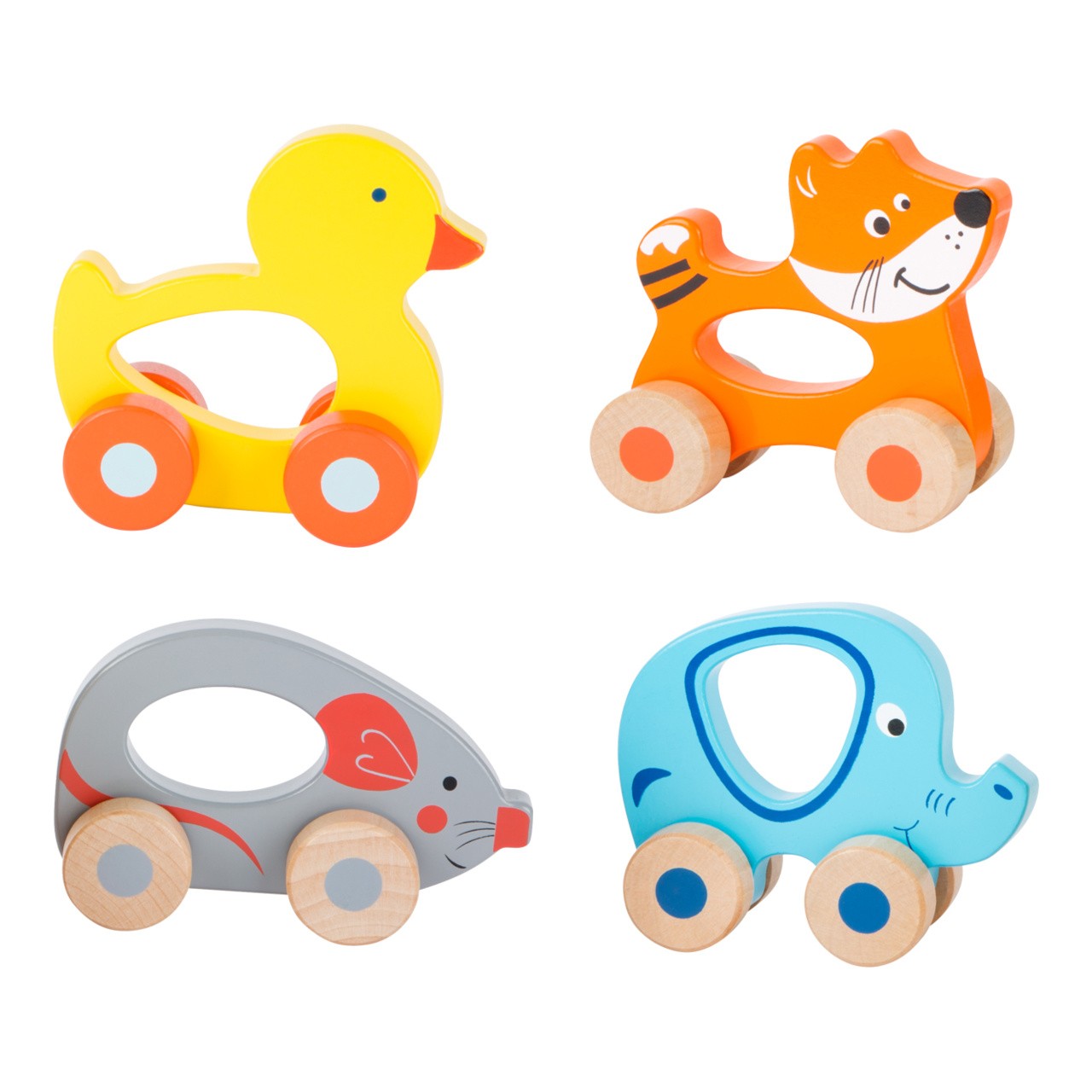 Cena je uvedena za 1 kus. Kdo bude tvůj nový přitel? Tato barevná zvířátka na kolečkách se budou zamlouvat každému. Slon, myš, liška i kachnička na kolečkách jsou ze dřeva a krásně malovány. Díky otvoru v těle zvířat je mohou děti jednoduše uchopit, kolečka se nezadrhávají. Hlavní vlastnosti: procvičuje motorikusnadno uchopitelné