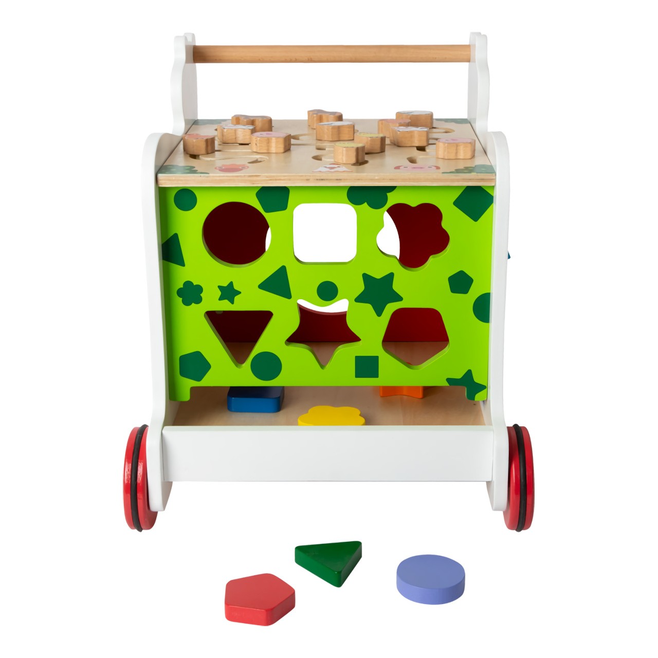 Rozměry: 38x37x42 cm Výška rukojeti: 40 cm Věk: 12m+ Materiál: dřevo, kov, guma Počet dílů: 7 Celý popis