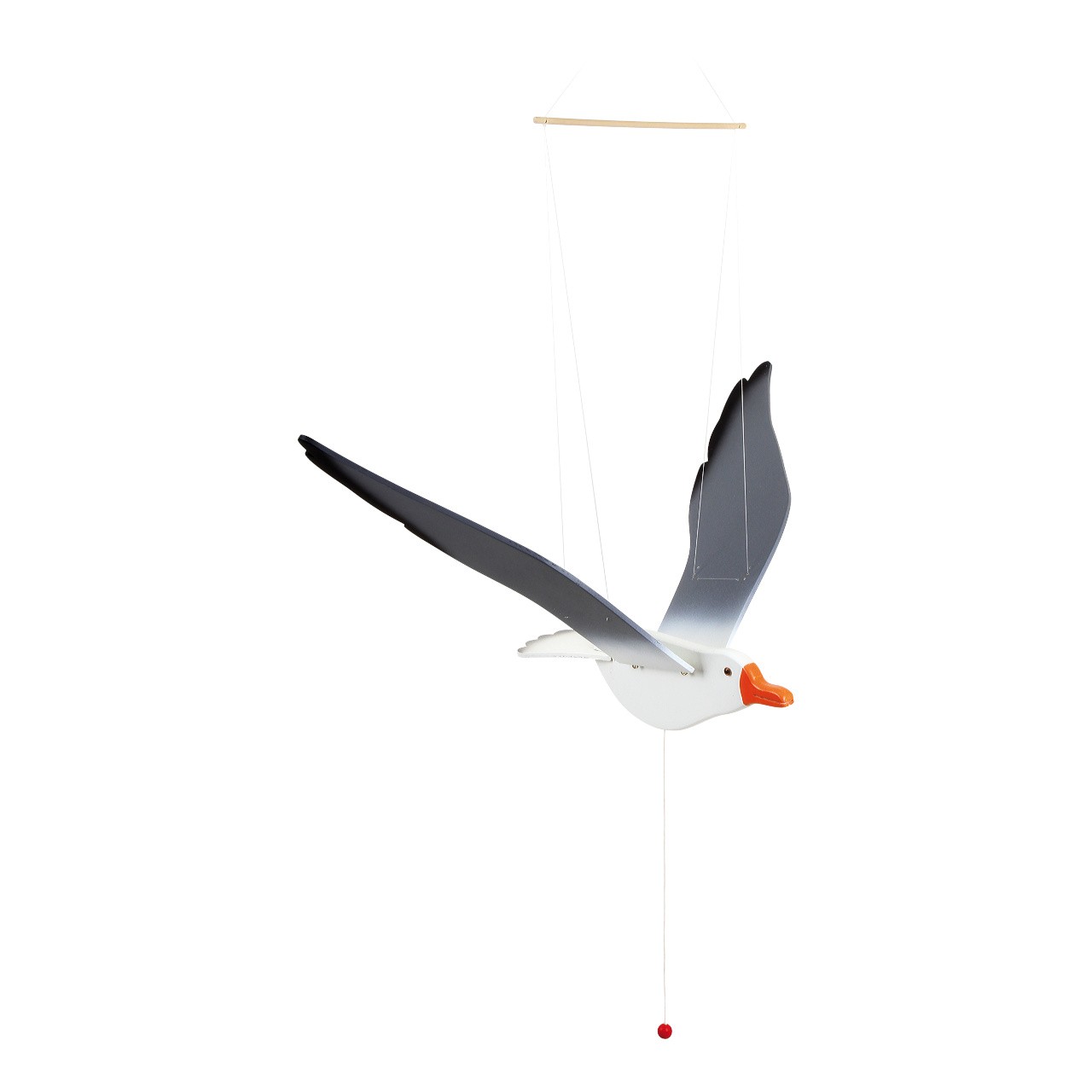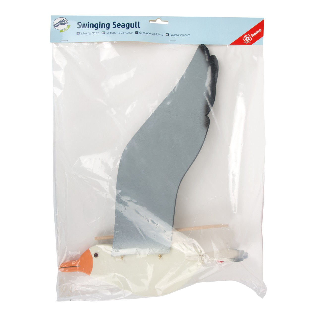 Velký dřevěný racek rozpíná křídla do šířky cca 74 cm. Zatažením za šňůrku s korálkem se jeho mohutná křídla dají do pohybu. Letí! Kam poletí a co tam uvidí je otázkou Vaší fantazie.  Hlavní vlastnosti: vyrobeno z kvalitního pevného dřeva dekorativní prvek