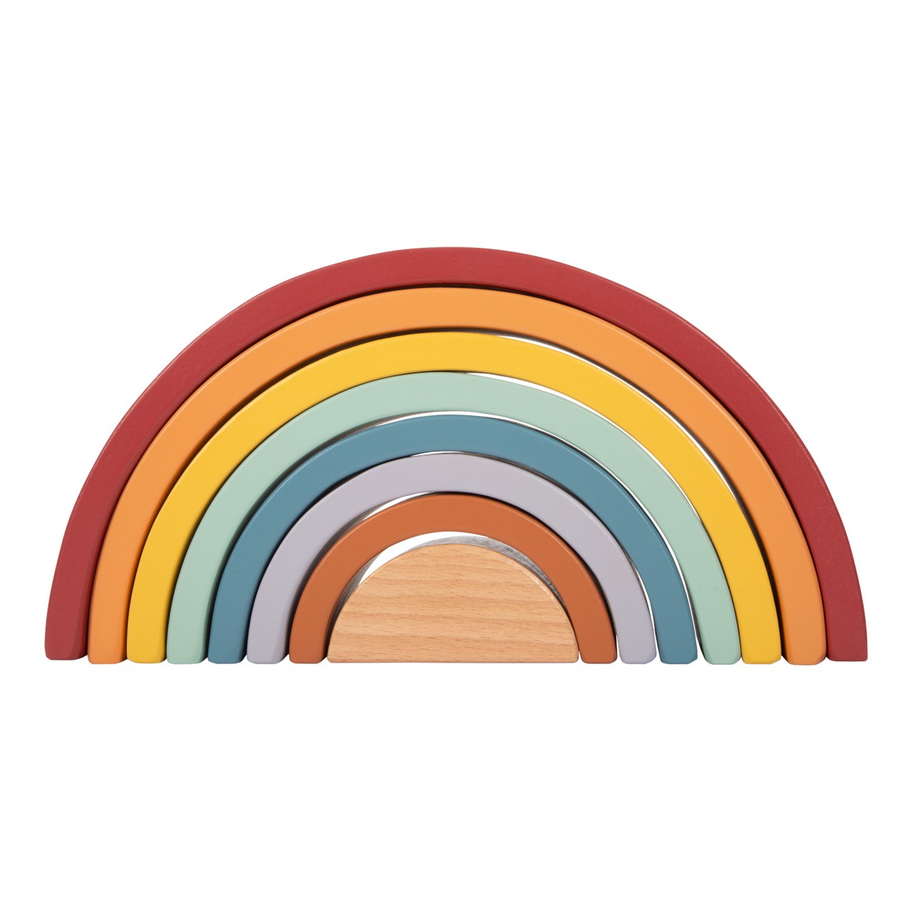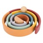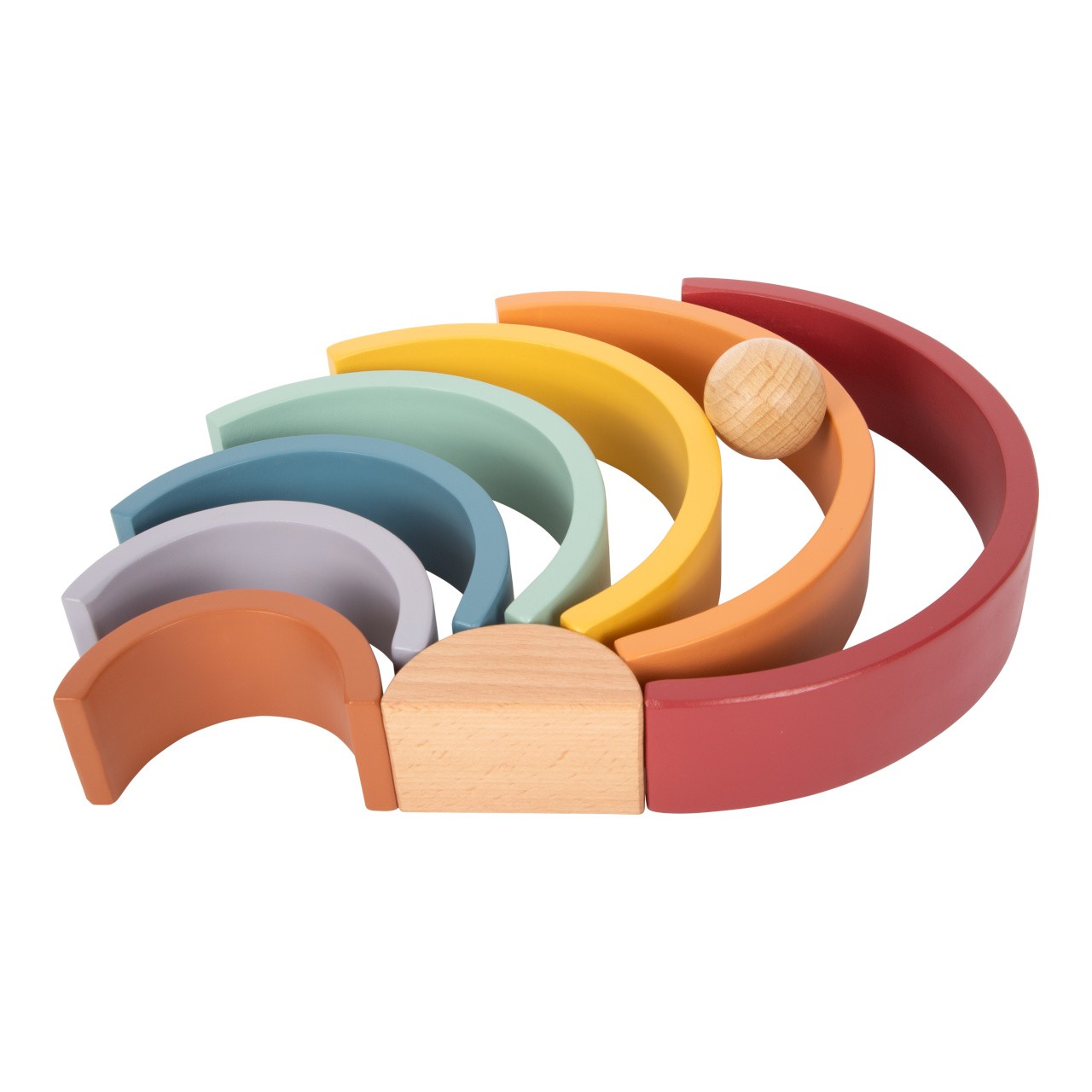 Která barva je nejkrásnější? Dřevěnou duhu doplňuje dřevěná kulička. Tato robustní duha vyrobená ze dřeva včetně dřevěné kuličky v přírodní barvě je ideálním společníkem pro batolata. 8 dřevěných oblouků v trendových barvách duhy, lze použít různými způsoby k třídění, stavění nebo skládání. Zapůsobí na děti i rodiče svým přirozeným dojmem a obzvláště krásným vzhledem. Umožňuje volnou hru podle Montessori pedagogiky a zajišťuje, že se fantazii při hraní meze nekladou - pro děti všech věkových kategorií! Ti nejmenší nahlédnou do teorie barev a naučí se poznávat barvy. Duhové "Safari" je také ideální do každého dětského pokoje a je skutečným poutačem.  Hlavní vlastnosti: univerzální oblouky ze dřeva s příjemnou haptikoumoderní barevné schémakulička z přírodního dřevavhodné pro hraní metodou Montessoripomáhá s porozuměním rozdílným velikostem a barvámděti mohou stavět tunely, překážkové dráhy a bludiště