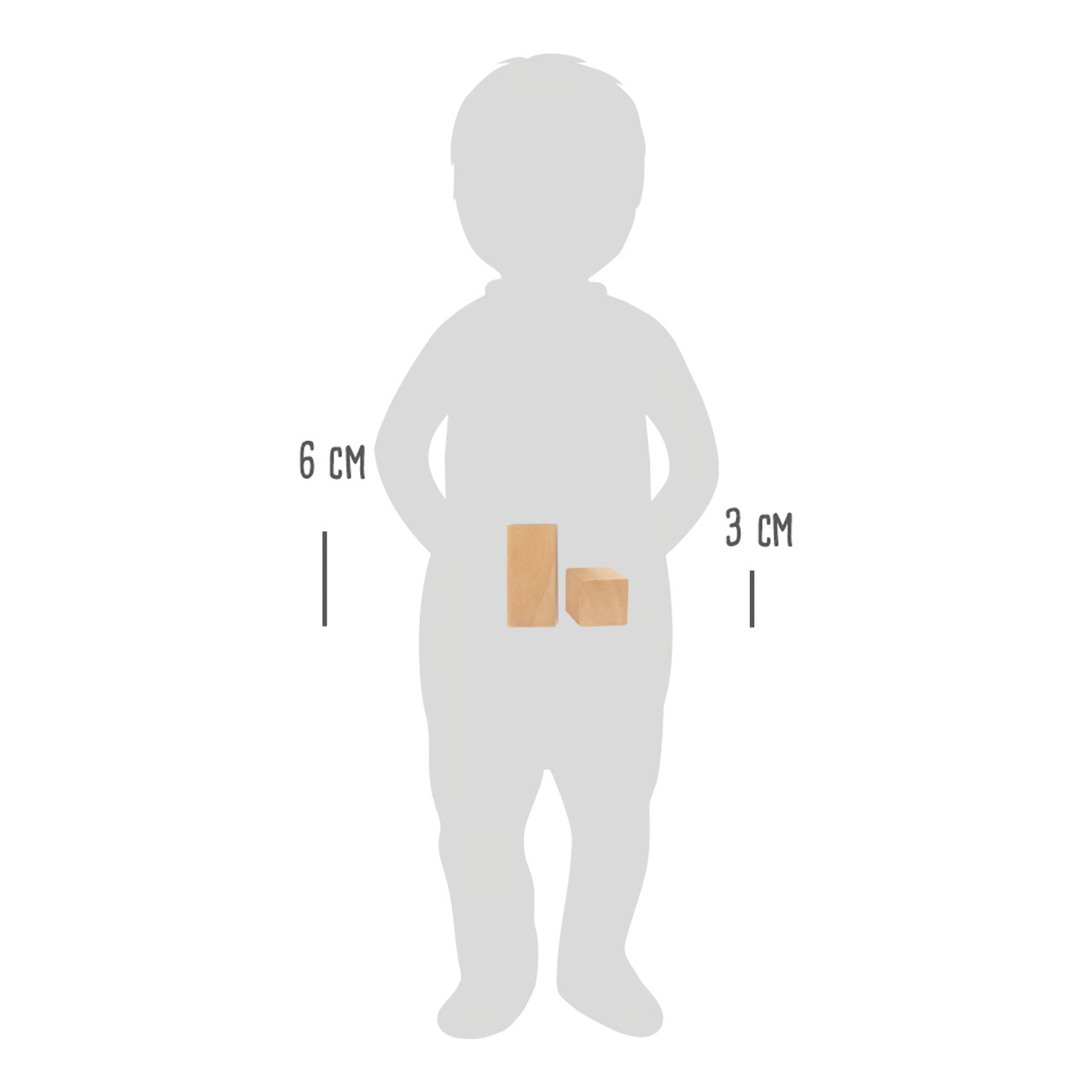 Rozměry: krychle 3x3x3 cm, kvádr 6x3x1,5 cm Věk: 12m+ Materiál: dřevo Celý popis