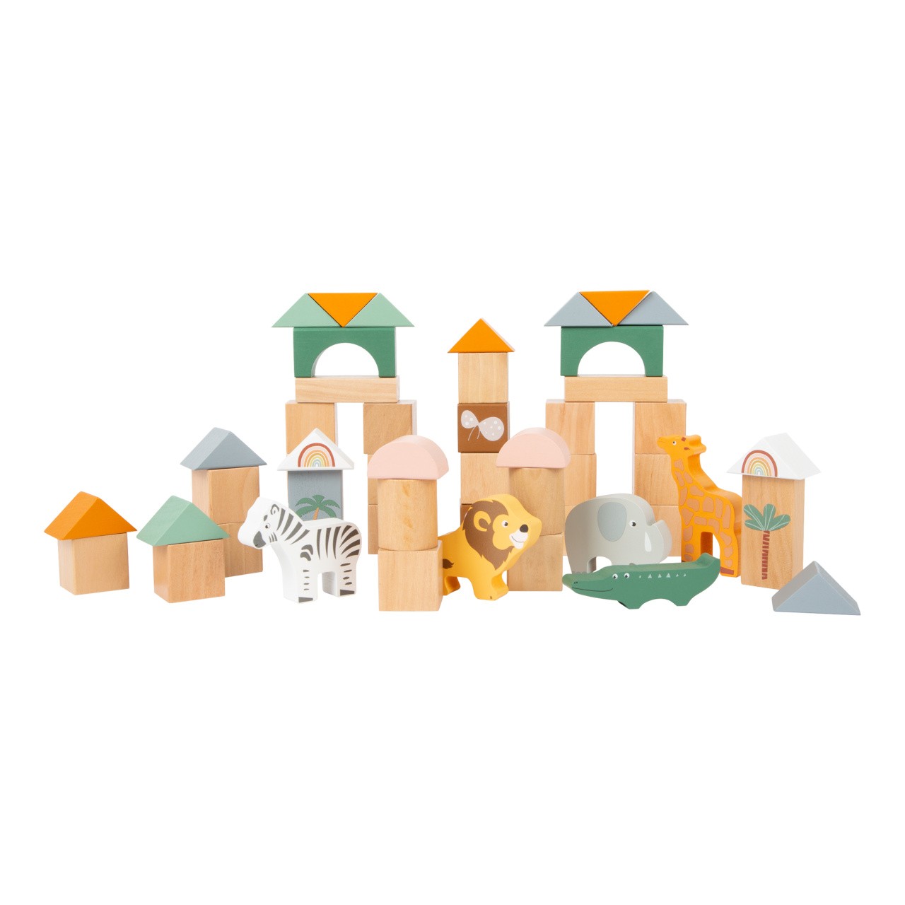 Klasika v moderním stylu! Tento set 50 dřevěných stavebních kostek děti okouzlí výběrem z mnoha rozdílných tvarů a barev. Navíc mezi těmito kostkami, které jsou nejen barevné, ale také mají přírodní kusy, najdete pět figurek safari zvířat. Tady se kreativitě meze nekladou. Můžete postavit domeček pro zebru, lva, žirafu, slona a krokodýla. Dílky jsou uloženy v krabici, kterou lze pevně uzavřít. Hlavní vlastnosti: ilustrováno, pastelové barvy45 dílů a 5 figurekpraktické balení