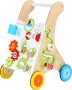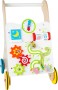 S tímto dřevěným chodítkem se vaše děti naučí hravě chodit. Tato velice stabilní interaktivní hračka na tichých kolech, má k objevování spoustu zábavných barevných detailů. Malá zvířátka a květiny se mohou pohybovat v labyrintu, sovy a ozubená kola se otáčejí. Obsahuje i výukové hodiny s pohyblivými ručičkami a také zrcadlo. Roztomilé motivy a jasné barvy přivedou každé dítě do dobré nálady a probudí chuť k objevování. Gumová kola pomáhají zabránit uklouznutí dítěte, proto budou i ty nejmladší děti schopny udělat své první kroky samostatně. Hlavní vlastnosti: multifunkčnostveselý motivpestrobarevná kolečka