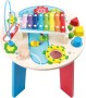 Robustně zpracovaný motorický a hudební stůl vyrobený ze dřeva. Obsahuje xylofon, korálkové bludiště, hru s ozubenými koly, posuvný labyrint, hru s tvary. Tato dřevěná hračka je ideální pro ranou hudební výchovu. Trénuje koordinaci ruka-oko, rozpoznávání barev a tvarů a jemnou motoriku. Pestrobarevný design vhodný pro děti. Hlavní vlastnosti: rozmanitá škála zvukových a motorických zážitkůideální pro ranou hudební výchovutrénuje smysl pro rytmus