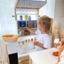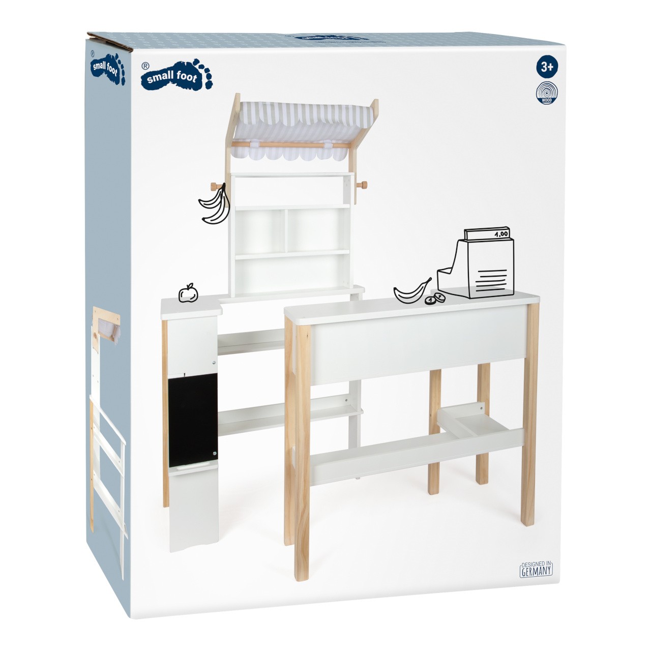 Kompaktní, modulárně konstruovaný obchod s odnímatelnou látkovou markýzou, můžete flexibilně začlenit do dětského pokoje.  Díky kombinaci neutrální bílé a přírodního dřeva, krásně zapadne do každého dětského pokoje. Včetně popisovatelná tabule s policí na křídu. Látková markýza mu dodává typický vzhled obchodu . Zaoblené hrany pultu poskytují dodatečnou bezpečnost. Neobsahuje příslušenství.  Hlavní vlastnosti: moderní a jednoduchý severský designrozvíjí komunikační a sociální dovednosti dětíčásti lze po hře přisunout k soběvhodný k ostatním hračkám z produktové řady Fresh