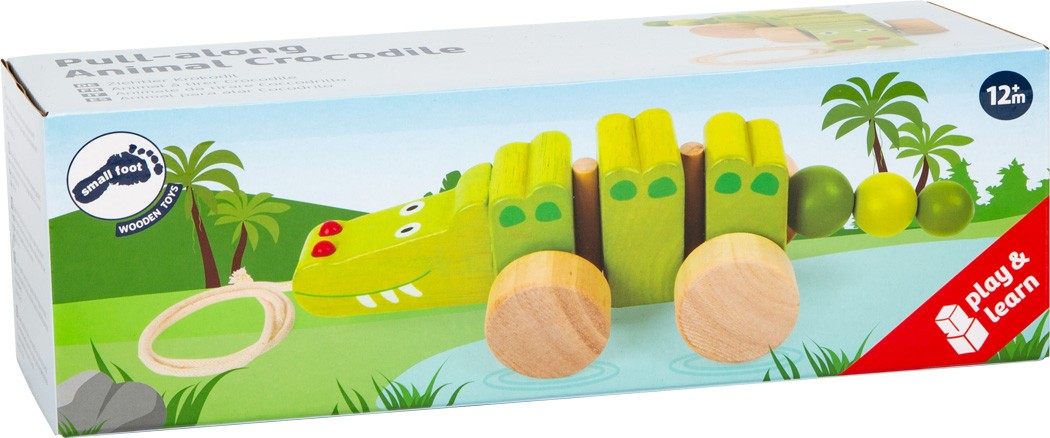 Tento legrační krokodýl, vyrobený z vysoce kvalitního zeleně glazovaného a neošetřovaného bukového dřeva, se za dětmi při zatažení za provázek vesele vrtí. Díky šňůře mohou nejmenší za sebou tohoto roztomilého tahacího krokodýla snadno tahat a chodit spolu na procházky. Hlavní vlastnosti: podporuje rovnováhu a koordinaci pohybůveselé barevné provedení i design