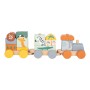 Složte jej a vyražte ze stanice! Tento dřevěný vláček v trendy barvách se rozjede až po nastoupení všech pasažérů – zebry, slona, žirafy a krokodýla. Vláček s mnoha detaily je zároveň nasazovací hračkou, která dává dětem volnost při skládání – každá kostka pasuje na více míst. Příští zastávka: Safari! Hlavní vlastnosti: ilustrováno v pastelových barváchobsahuje 1 lokomotivu, 2 vagóny a 13 dílůtrénuje motoriku a představivost