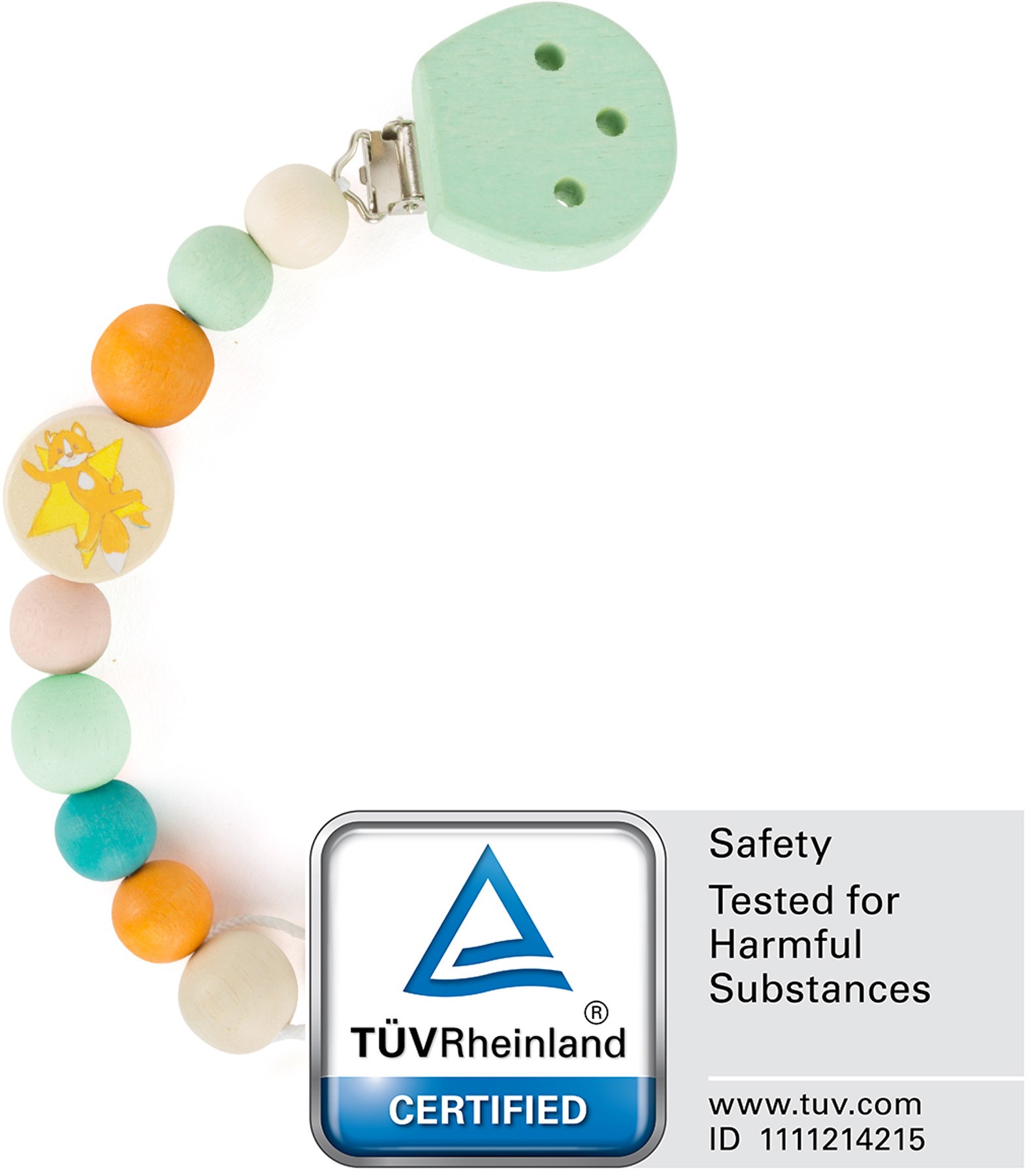 Design řetízku na dudlík je vhodný pro děti. Je odolný proti slinám a různé tvary na něm lze zkoumat rukama a očima, což trénuje motorické dovednosti a inspiruje zvědavost. Hlavní vlastnosti: dudlík je stále na dosahprocvičuje motorické schopnostiCertifikát zdravotní nezávadnosti - bez toxických látek