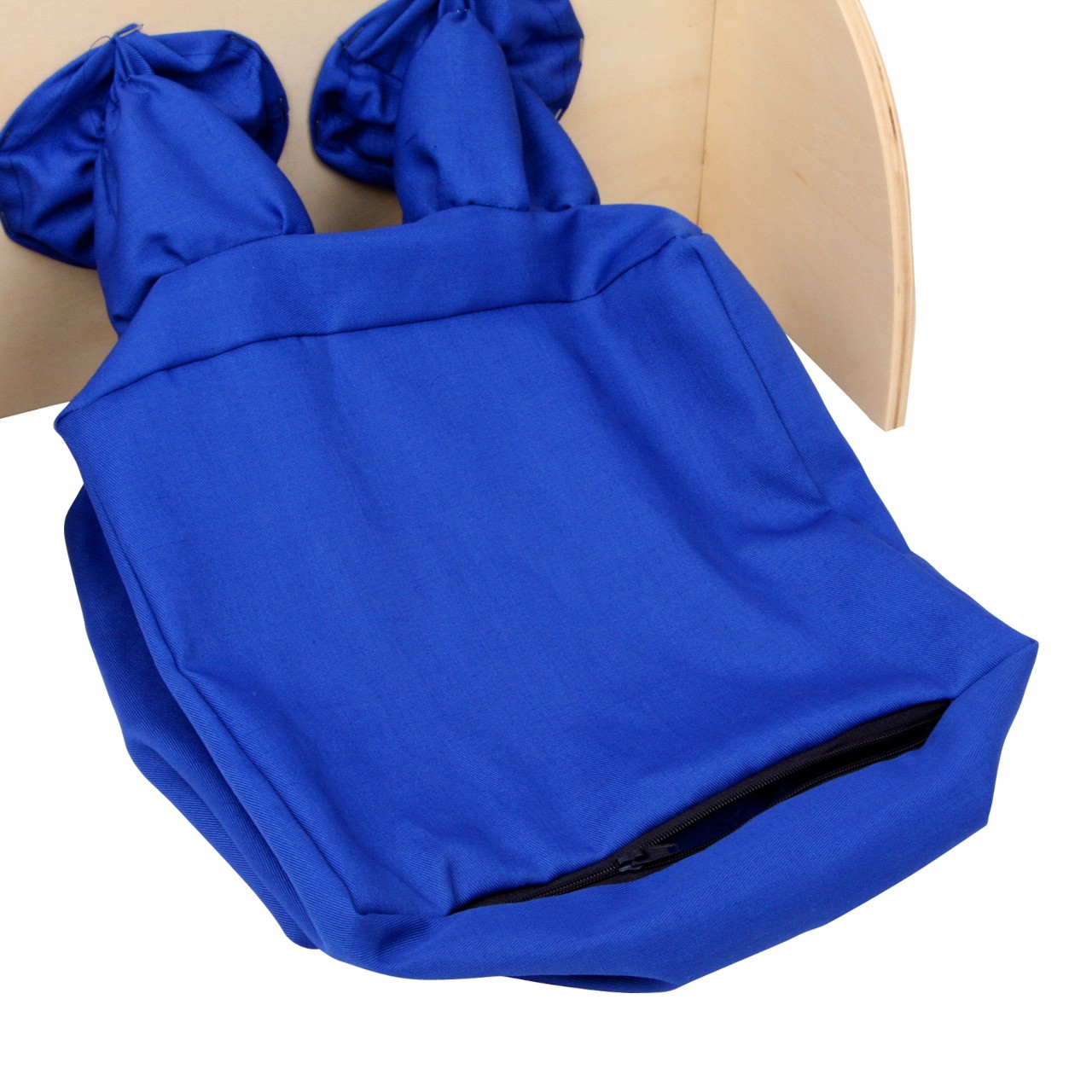 Různé předměty ukryjte do látkového pytlíku za dřevěnou stěnou. Pytlík je opatřen zipem, pro snadnější vkládání předmětů. Děti vloží ruce do textilních rukávů a podle hmatu se snaží rozpoznat, o jaký předmět se jedná. Hlavní vlastnosti: hra je vhodná také do školek nebo družinpomáhá rozvoji poznávacích a motorických dovedností