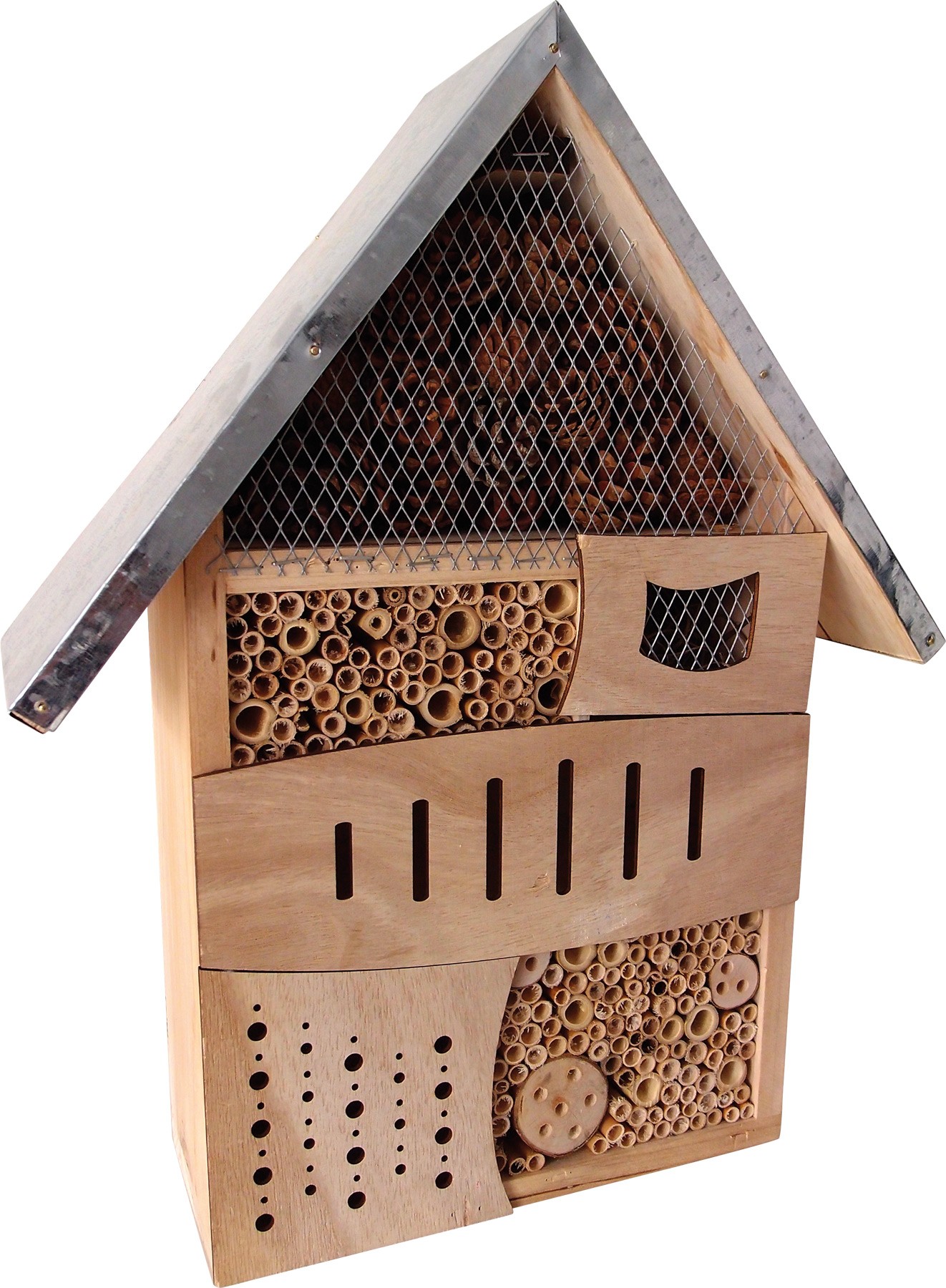 Pozvěte maličké hmyzí kamarády do luxusního hotelu, kde mohou nalézt rozmanitá útočiště podle vlastní chuti! Budete je tak moci mít na blízku pro pozorování a rozlišování. Hmyz je velmi důležitý pro růst květin a přispívá i k bohaté úrodě ovoce. Který druh si za úkryt vybere šišku? A který bambusovou trubičku? Hotýlek poslouží i jako dekorace, která zpestří Vaši zahradu. Dlouhou životnost příbytku zajišťuje plechem krytá střecha. Ta je opatřena i kovovým háčkem pro snadné a spolehlivé zavěšení. Hlavní vlastnosti:praktický doplněk, atrakce i dekoraceplechem krytá střecha pro dlouhou životnostodolné dřevěné provedení