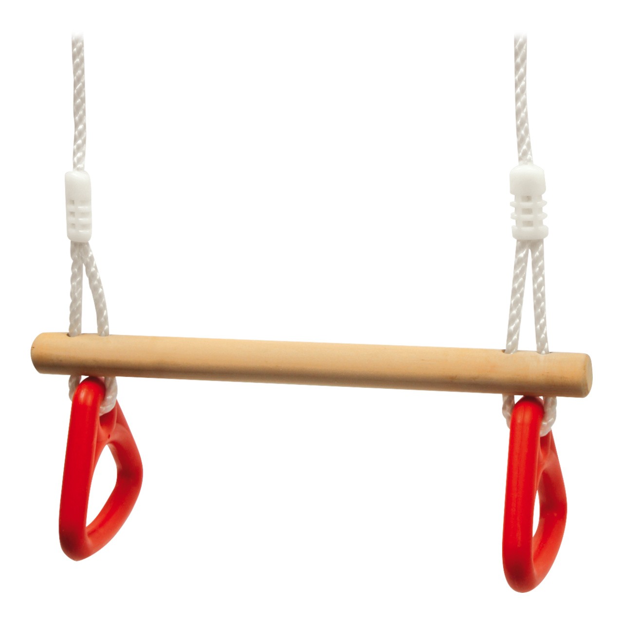 S víceúčelovou houpačkou se mohou děti nejen houpat, ale i posilovat rovnováhu, sílu a obratnost. Na robustní dřevěné tyči mohou sedět, nebo se za ni držet a využívat ji jako hrazdu. Pro lepší a jistější úchop, například ke cvičení přítahů, je tyč opatřena ještě dvojicí plastových madel. Výšku lze kdykoli snadno upravit pomocí kovových průvlaků, k zavešení jsou lana opatřena kovovými kroužky. Hlavní vlastnosti:2v1, houpačka a hrazda s madlyjednoduché nastavení délky lanodolné provedení