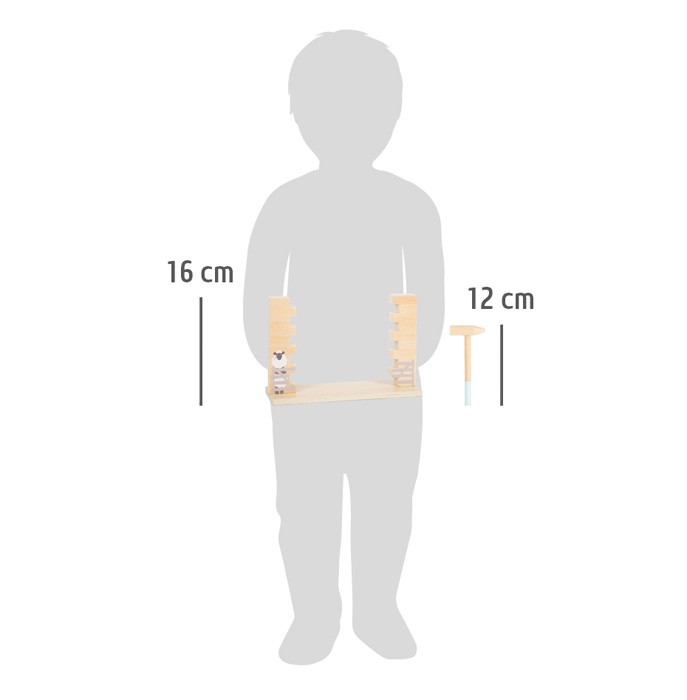 Rozměry: 24x7.5x16 cm Rozměry kladívka: 12 x 5 cm Věk: 4+ Materiál: dřevo Celý popis