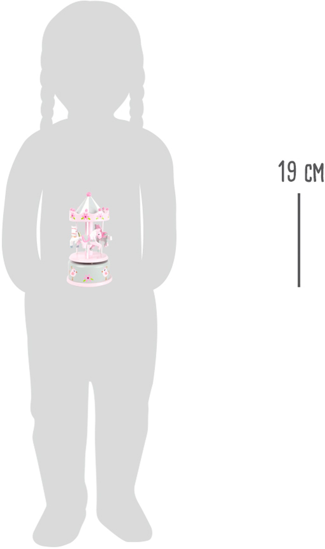 Kdo tady už usnul? Tato klasická dřevěná hudební skříňka uspí každé malé dítě. Kruhový kolotoč s koníky se vesele otáčí s melodií "Where do I begin?". Dekorační barvy a nostalgický design dělají z této hračky na nočním stolku skutečný poutač . Kdo ještě jednou natáhne hudební skříňku? Hlavní vlastnosti: holčičky si tuto hračku jistě zamilují krásný doplněk do herny nebo dětského pokojeodpovídá evropské bezbečnostní normě