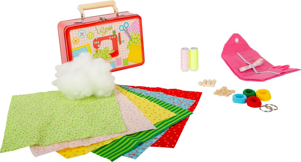 Vytvořte si sami něco pomocí jehly a nití! Přiložené látky mají krásné motivy a můžete je nastříhat podle dostupných vzorů. Malá krabička z filcu uschovává všechny důležité šicí doplňky jako např. nůžky, jehly a metr. Malé knoflíky a dřevěné korálky slouží jako ozdoby. Kompletní sada je zabalena v malém kufříku z kovu a je ideální pro přepravu!Německá firma Legler zaměřená na výrobu kvalitních dřevěných hraček od roku 1996. Všechny dřevěné hračky značky small foot mají označení CE a jsou vyráběny dle evropské normy pro bezpečnost hraček EN 71. Použité barvy jsou speciálně vyvinuty pro dřevěné hračky a jsou odolné i proti slinám dětí. Dřevo, které se používá pro tyto hračky, většinou pochází z lesnických společností zapojených do zalesňování. To nabízí všem zákazníkům možnost přispět k zachování přirozeně rostoucích lesů. Dřevěné hračky small foot jsou zářivě barevné produkty, které jsou vyrobeny převážně z přírodních surovin - dřeva. Dětem dělají radost od útlého věku, rozvíjí jejich hmatové a smyslové dovednosti. Cílem značky small foot je podporovat duševní a fyzický vývoj dětí.
