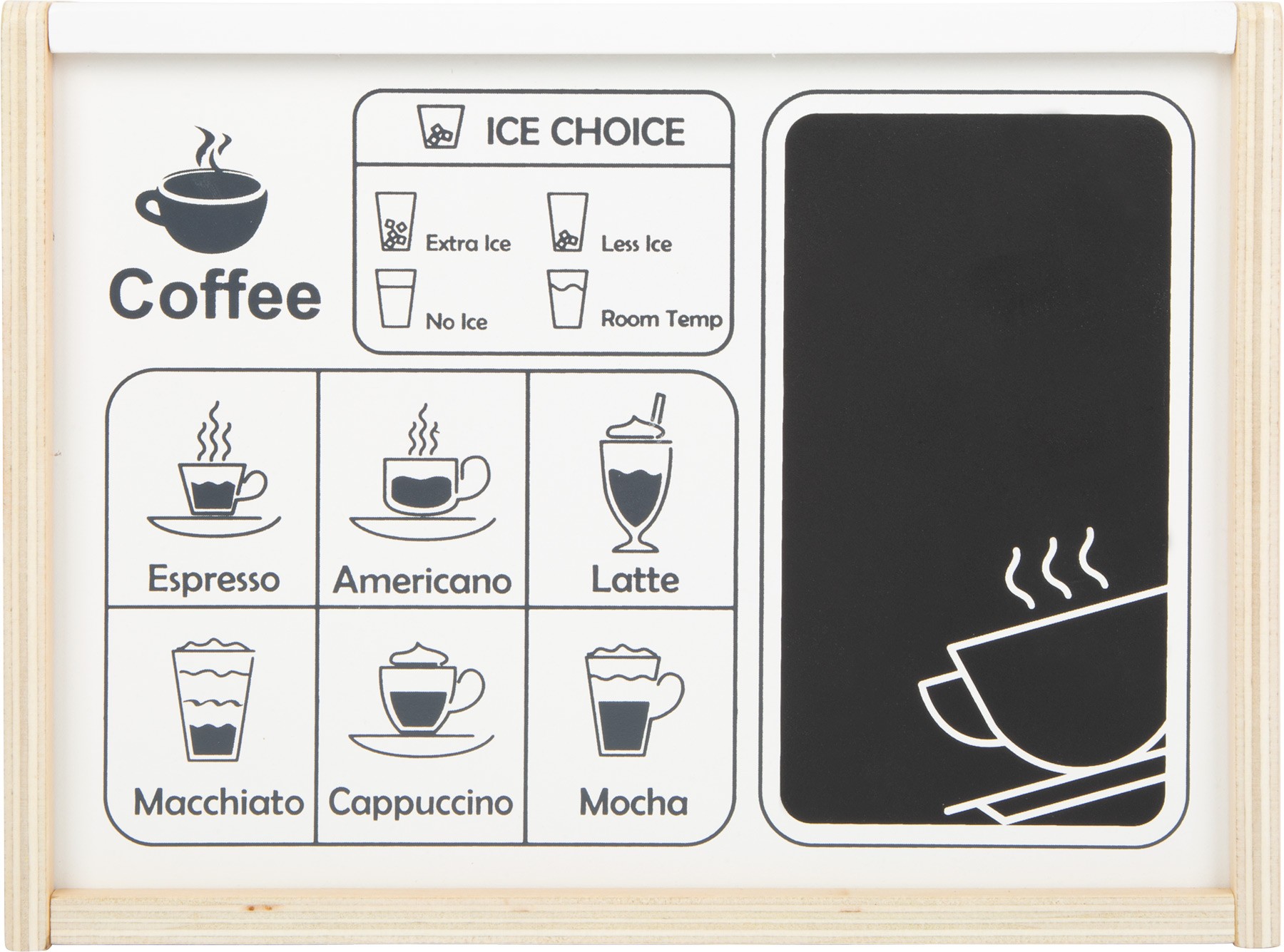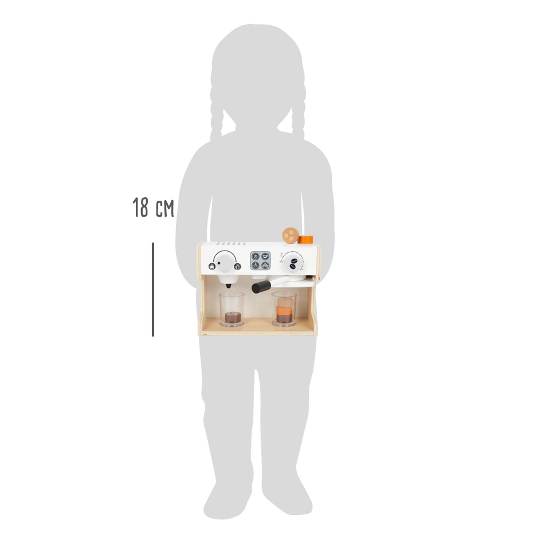 Máme tady nějaké mladé baristy a baristky? S tímto profesionálním kávovarem ze dřeva si můžete udělat perfektní kávu i ve své dětské kuchyňce. Dva ciferníky při otáčení klikají, část s kafe filtrem je otočná. Můžete si uvařit různé typy kávy. Na zadní straně je tabulka, na kterou můžete napsat svou denní nabídku. Moderní kávovar s napěňovačem, díky kterého můžete pít kávu jako rodiče! Hračka podporuje rozvoj motoriky a hraní na rolí. Hlavní vlastnosti: cvakající, otočné knoflíkytabulka na křídy pro denní nabídkupodporuje aktivní hraní rolírozvoj motoriky