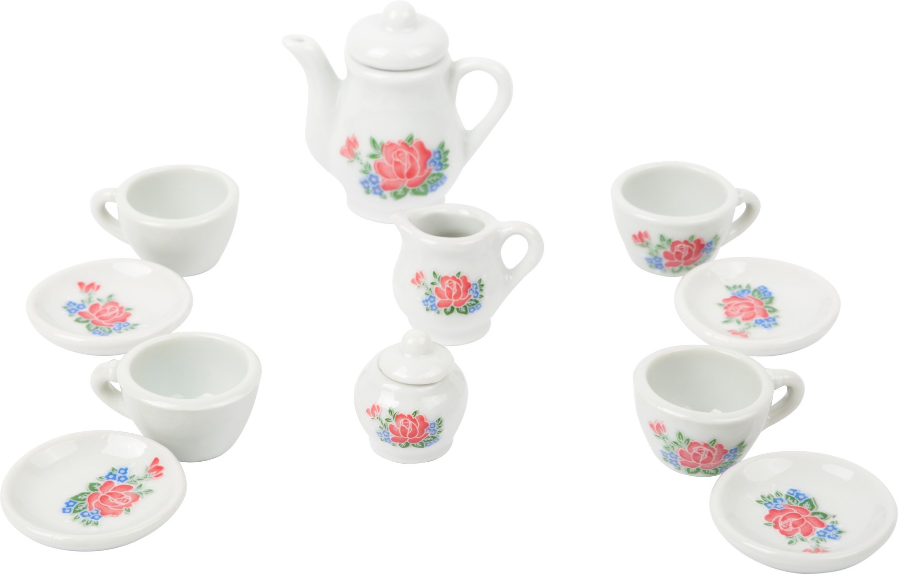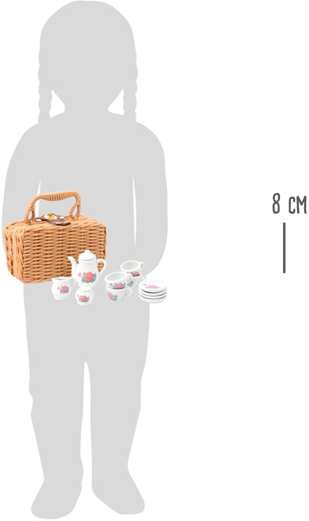 Rozměry: 16x9x8 cm Rozměry konvice: 6.5x4x6 cm Věk: 3+ Materiál: proutí, porcelán Obsahuje 14 ks Celý popis